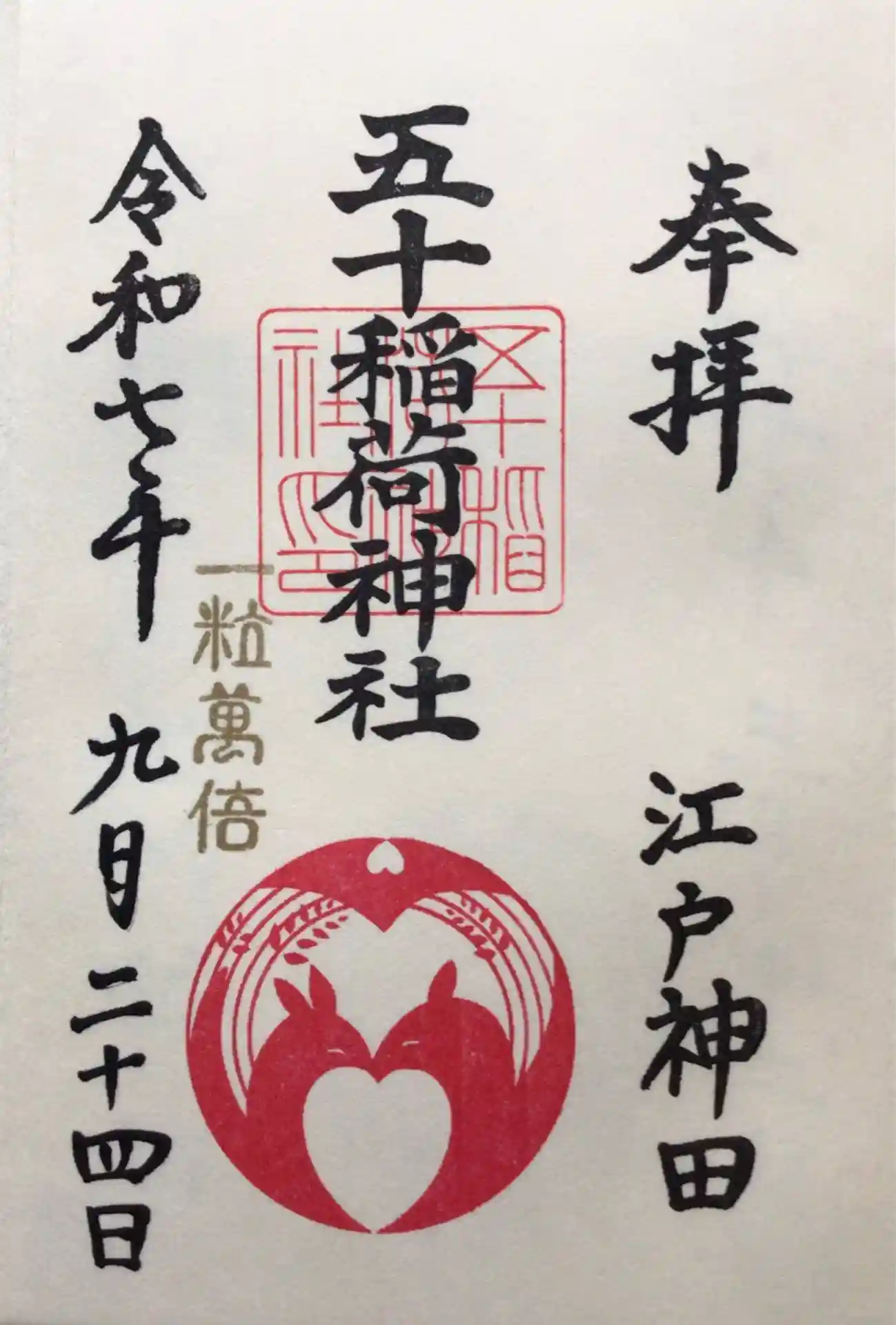五十稲荷神社さんのSNSで、今月のお書き入れ可能日を確認したところ、今月後半は9/24、26、28の三日間のみで、26、28日は行けないので、本日,月参りに行って来ました。先月は、日程が合わず、最初から書き置きのみの日で選んで行ったので、今月は良かったです^ - ^