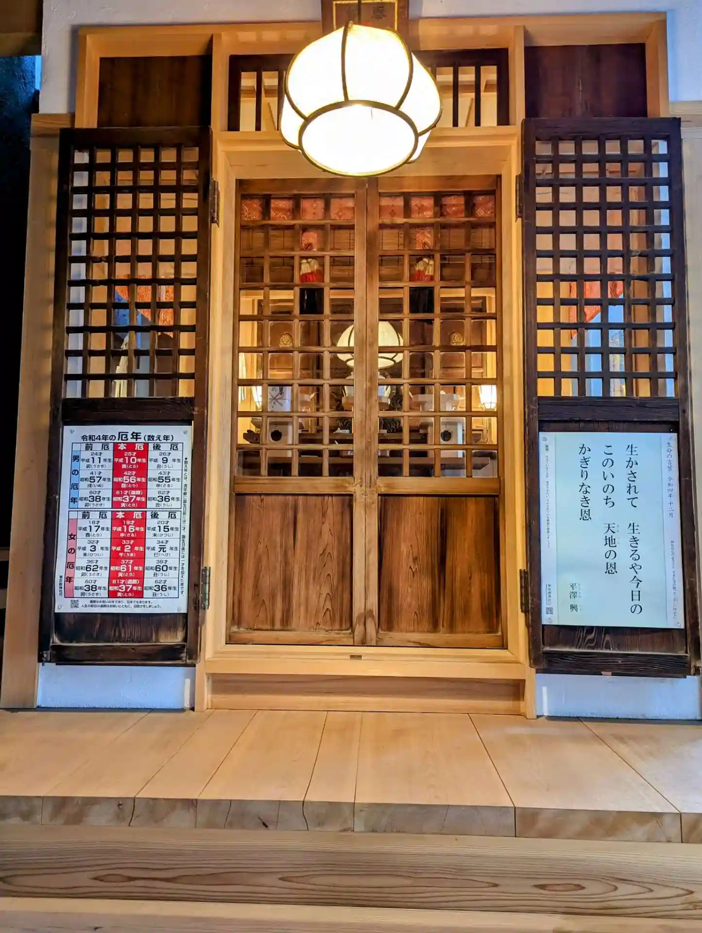 御朱印待ちをしていたら提灯に灯りがはいりました😊
