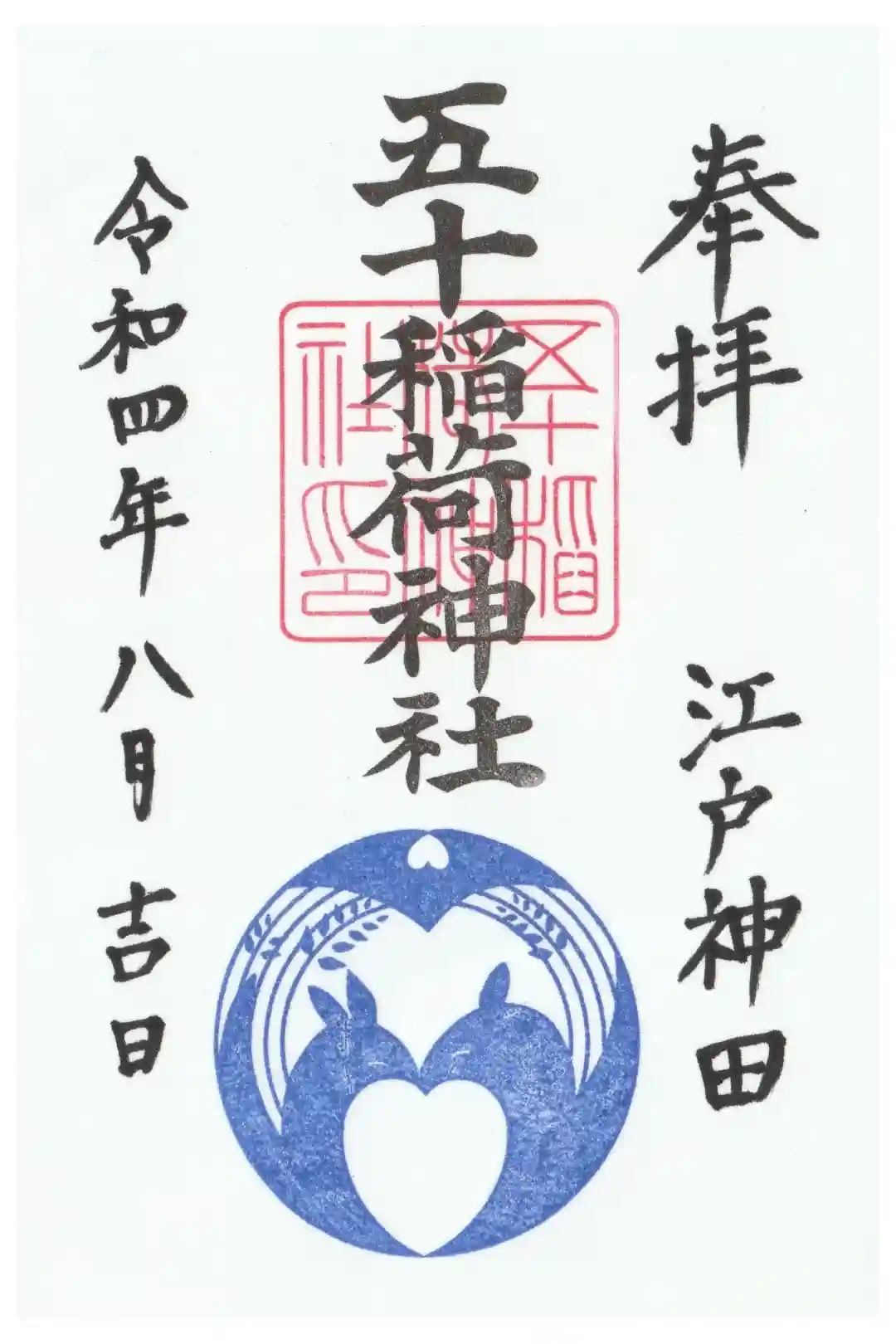 令和4年 『五十稲荷神社の日』 特別御朱印 黒文字