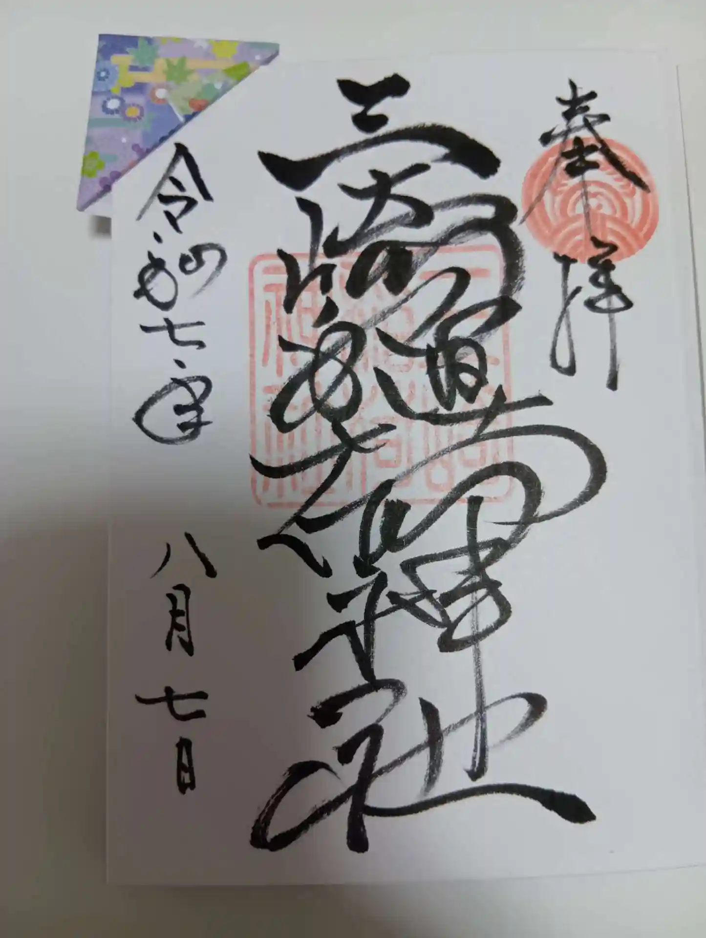 そしてもう一種類、今月の御朱印として社務所のガラスに切り絵の御朱印が掲示されてました。今回はこちらを拝受しました。