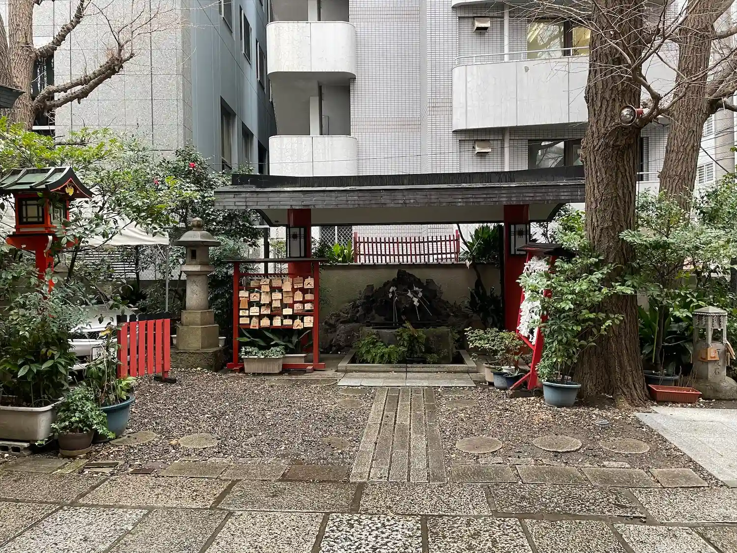 御朱印は境内左手の社務所で頂くことができます。都心の駅前にある神社なので、駐車場は付近のコインパーキングを利用することになります。