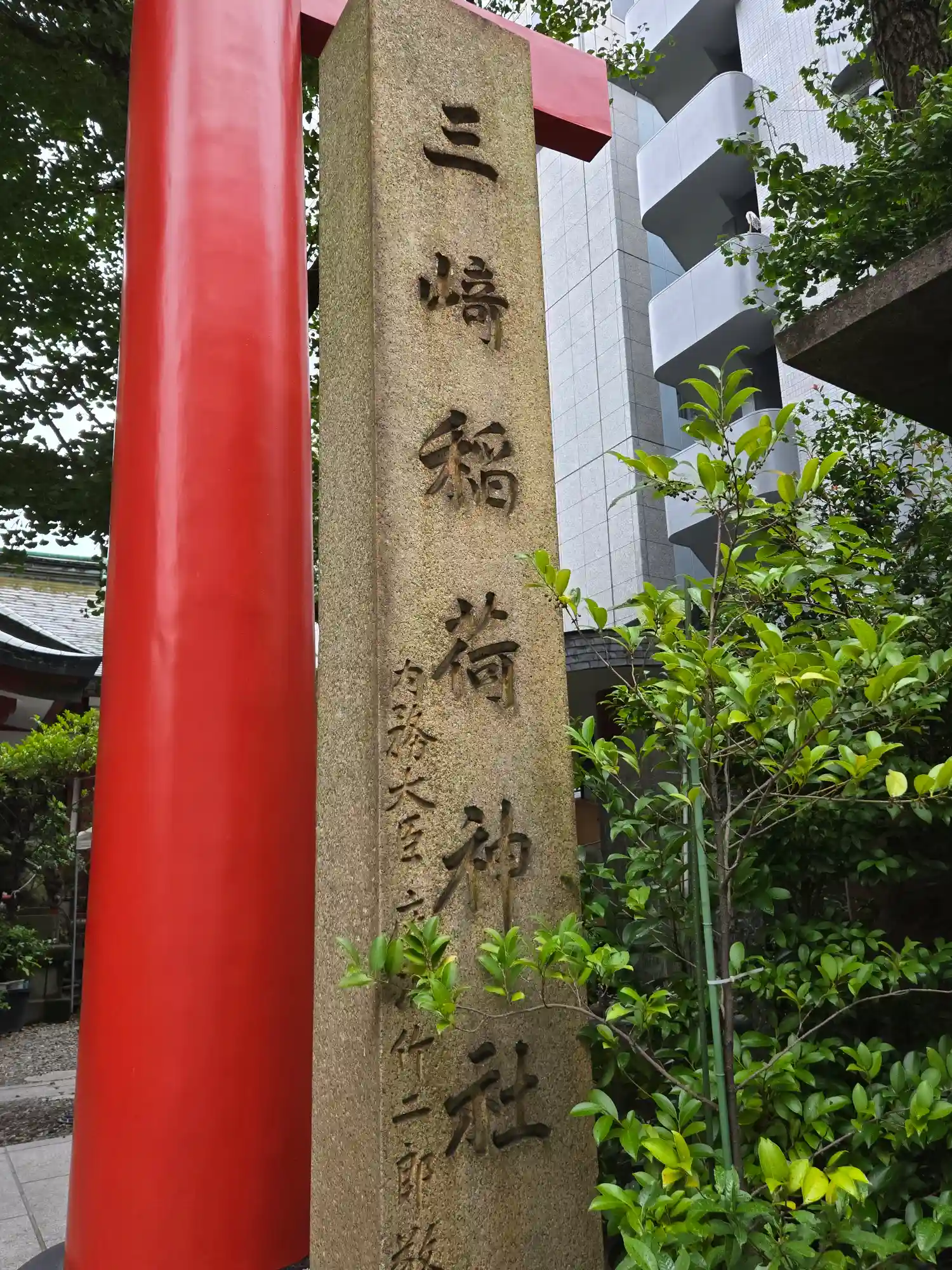 三崎稲荷神社〜社号碑と赤い鳥居
