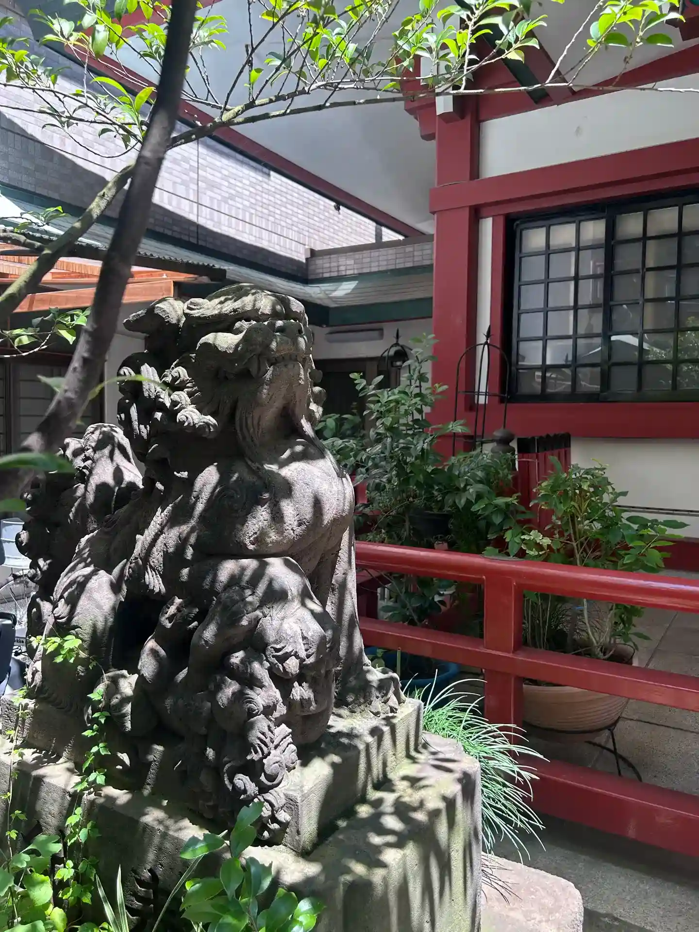 子どもの狛犬がじゃれている姿が愛くるしい。