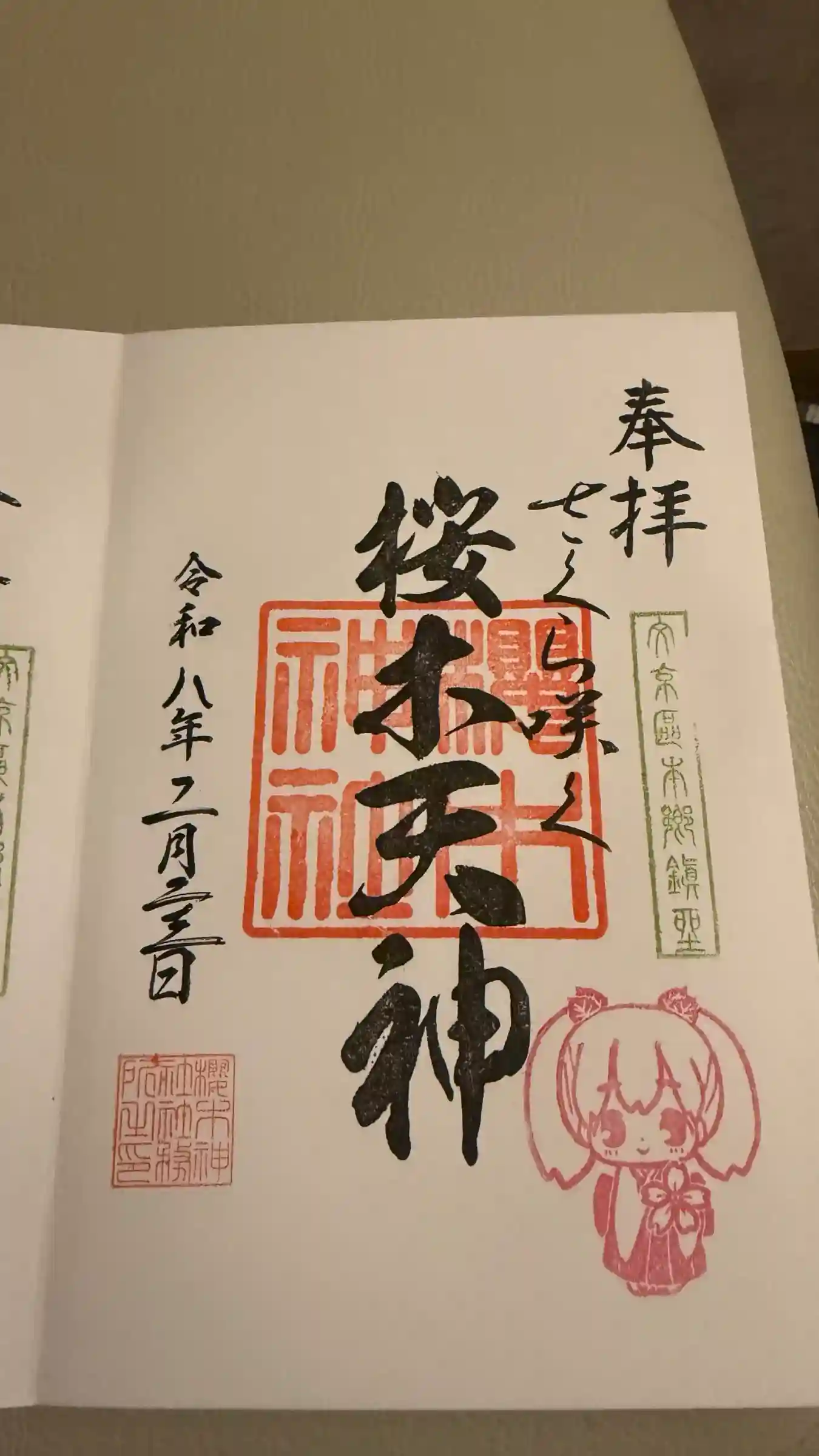 2月の桜木天神の御朱印 書き置き