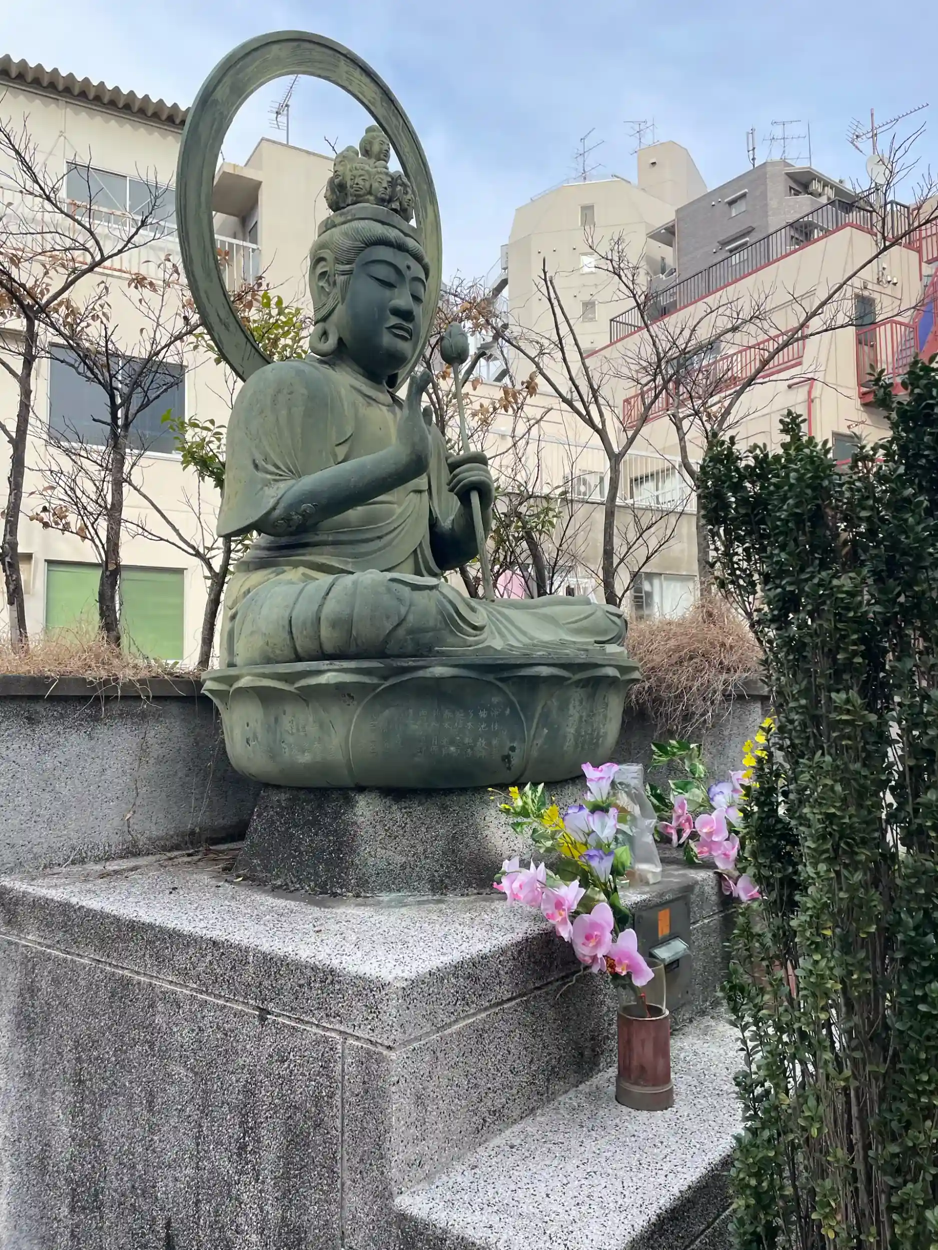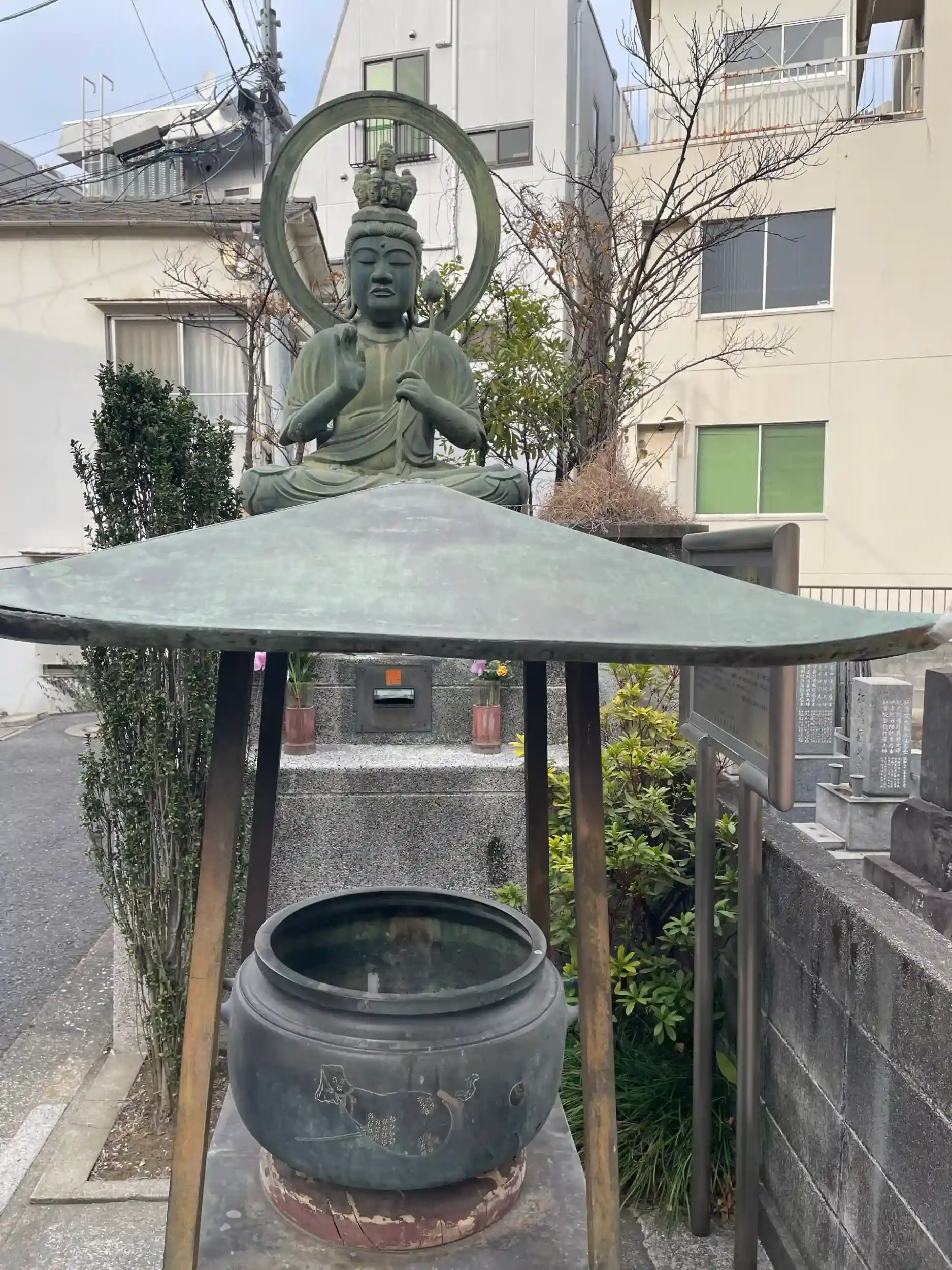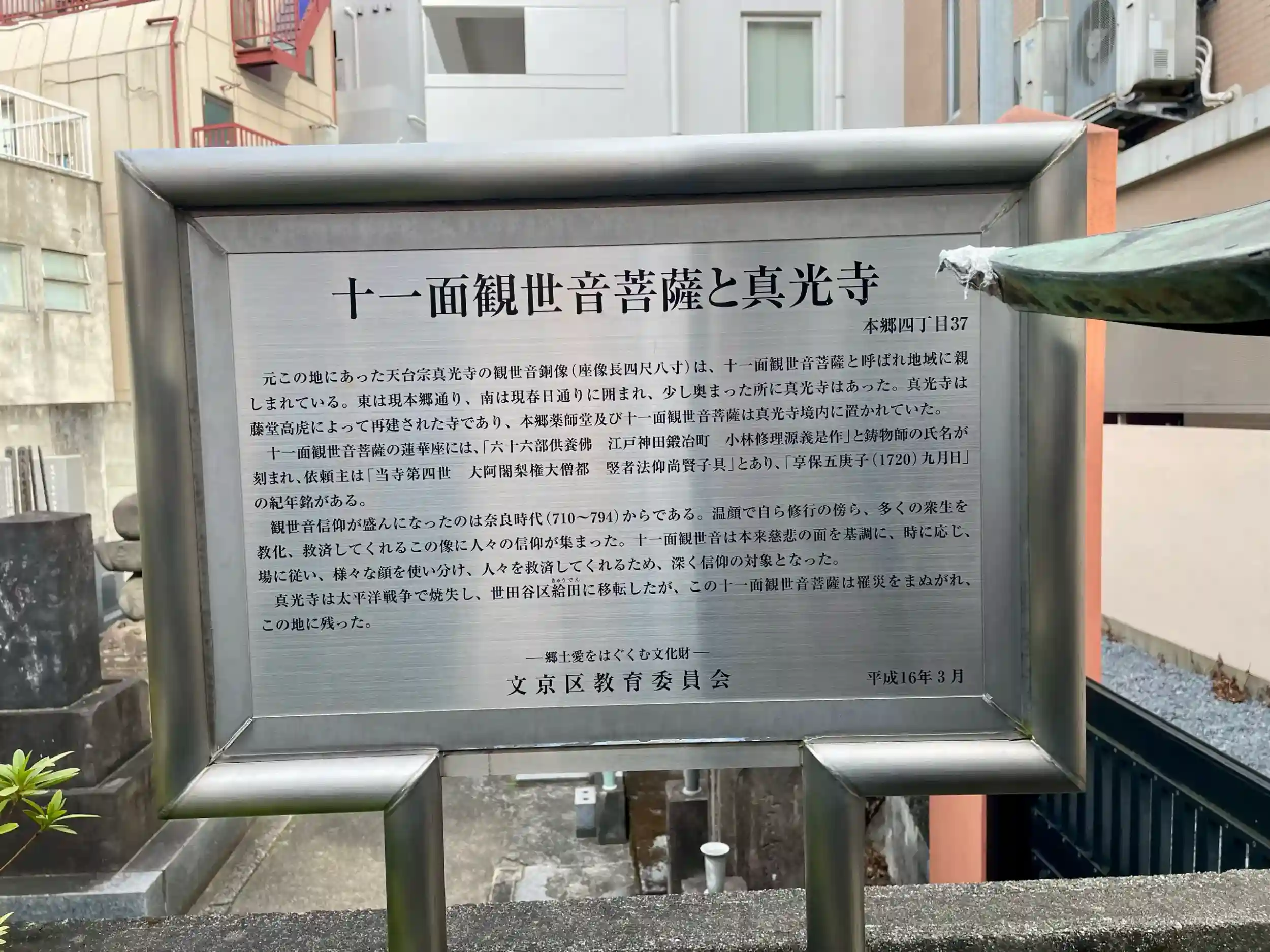 太平洋戦争によって真光寺は焼失してしまい、世田谷給田へ移転したが、薬師堂と十一面観世音菩薩は罹災を免れ、この地に残った。