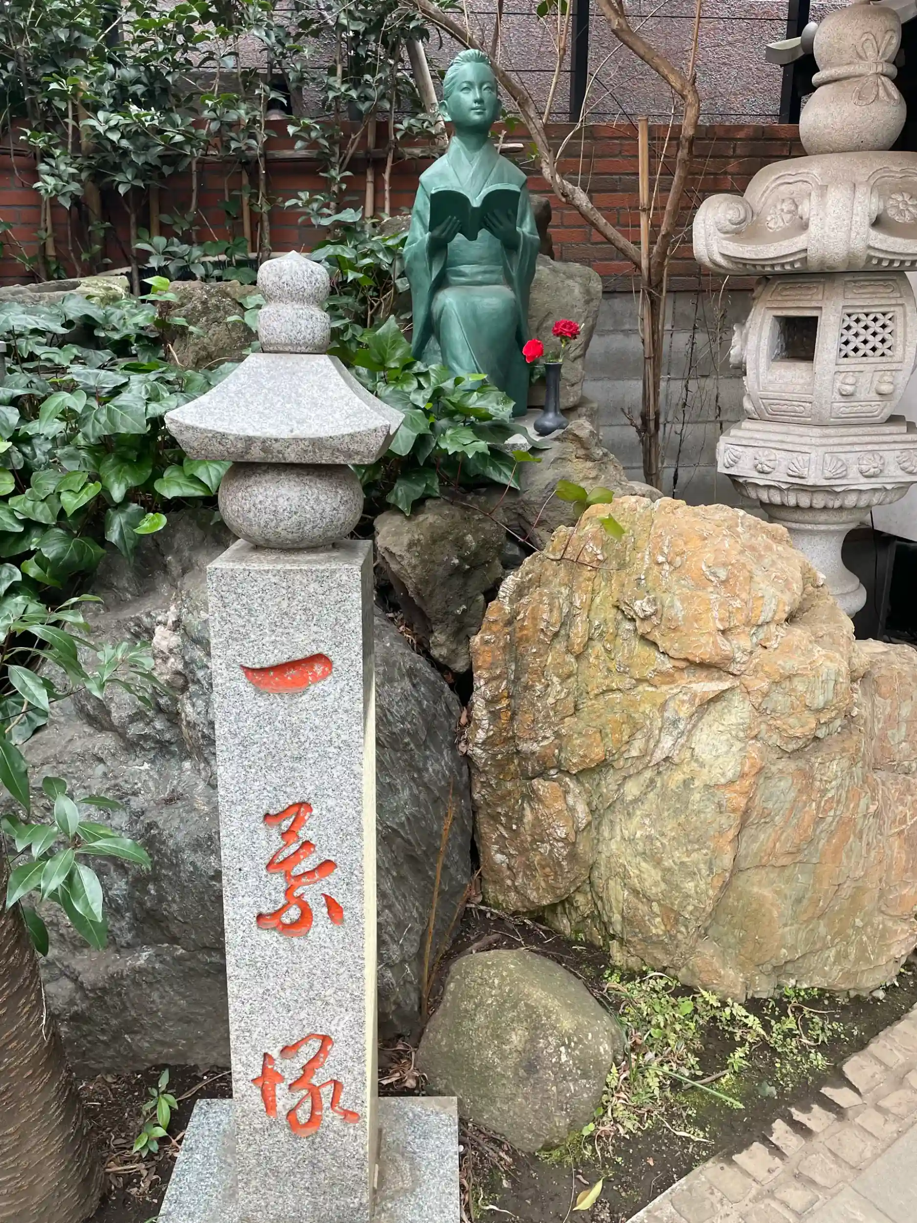 樋口一葉は幼少期に当寺の隣家に住んでおり、一葉の小説『ゆく雲』にも当寺が描写されるなど、「樋口一葉ゆかりの寺」として知られている。