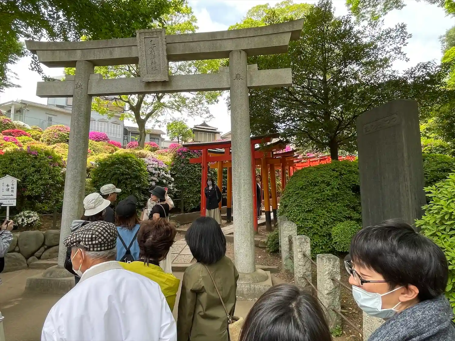 根津神社の境内社、乙女稲荷神社に参拝。千本鳥居が有名でフォトスポットになっていて入っていくのに列をなしていた。御朱印は根津神社の社務所にて書置きでいただきました。
