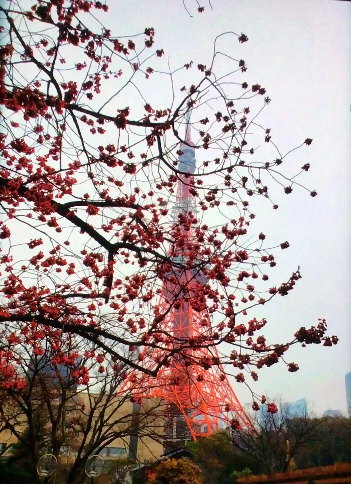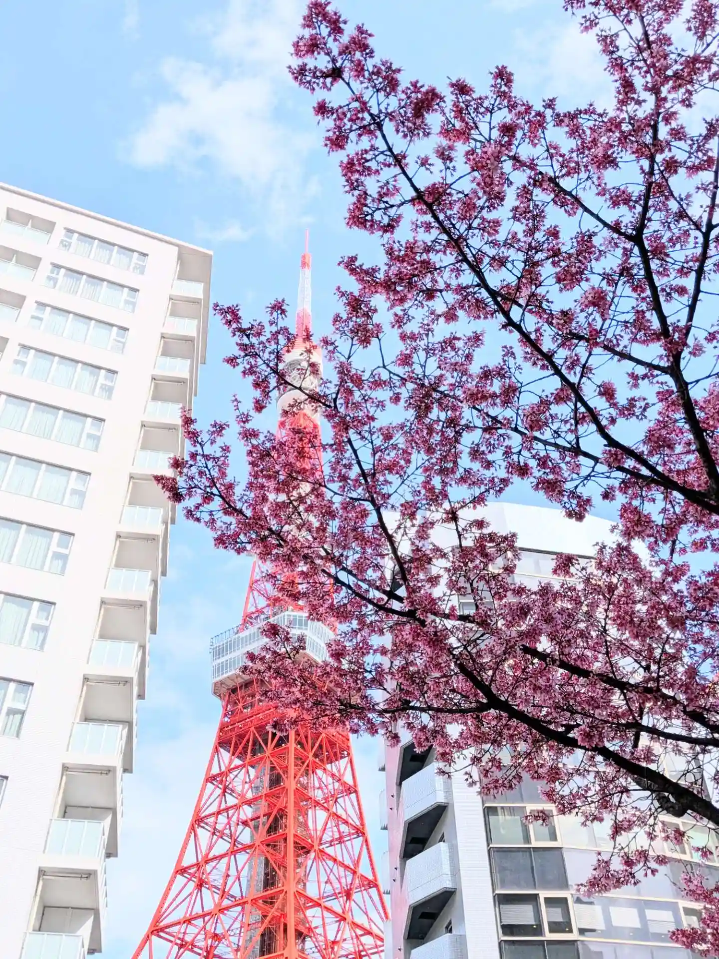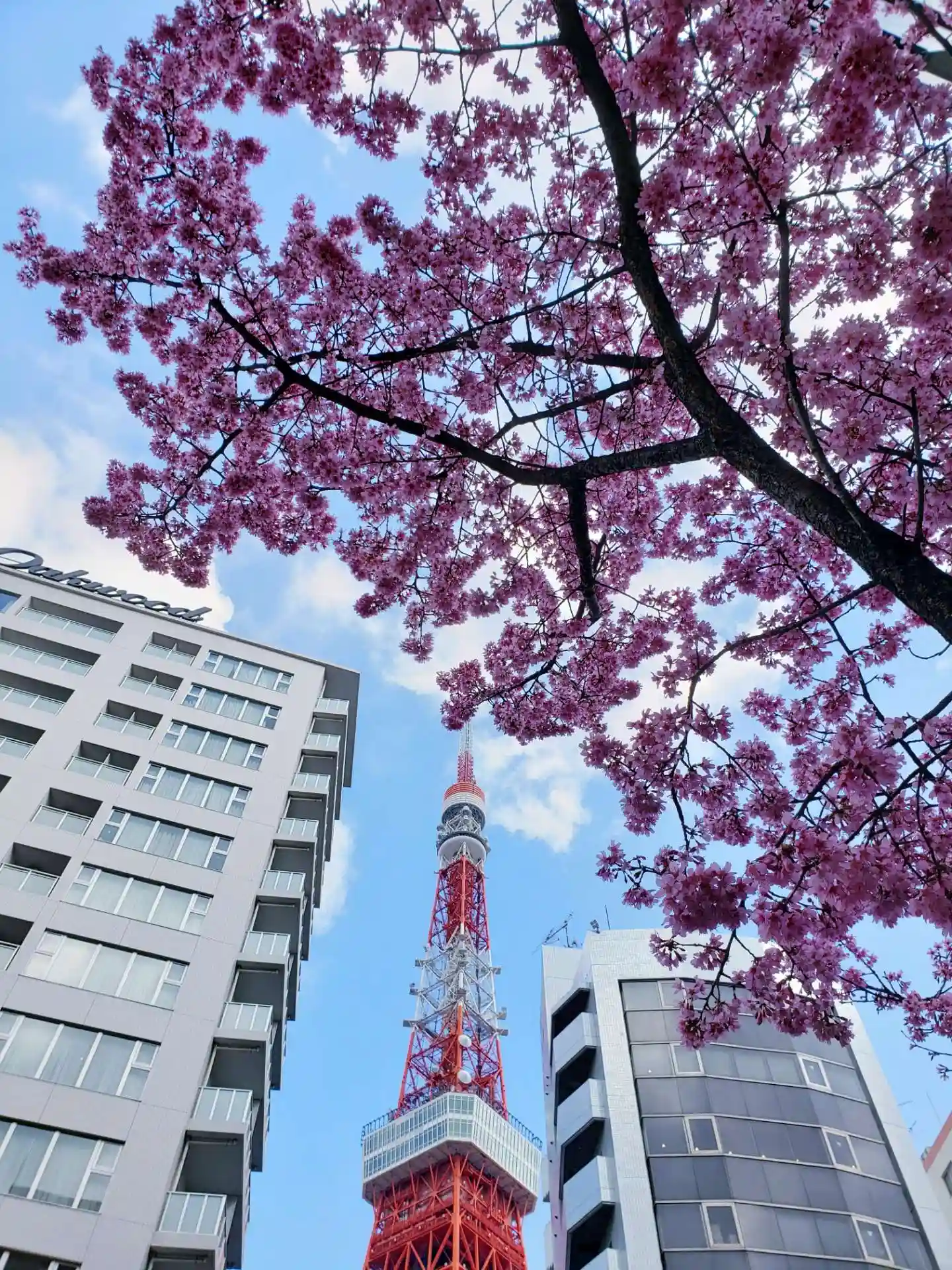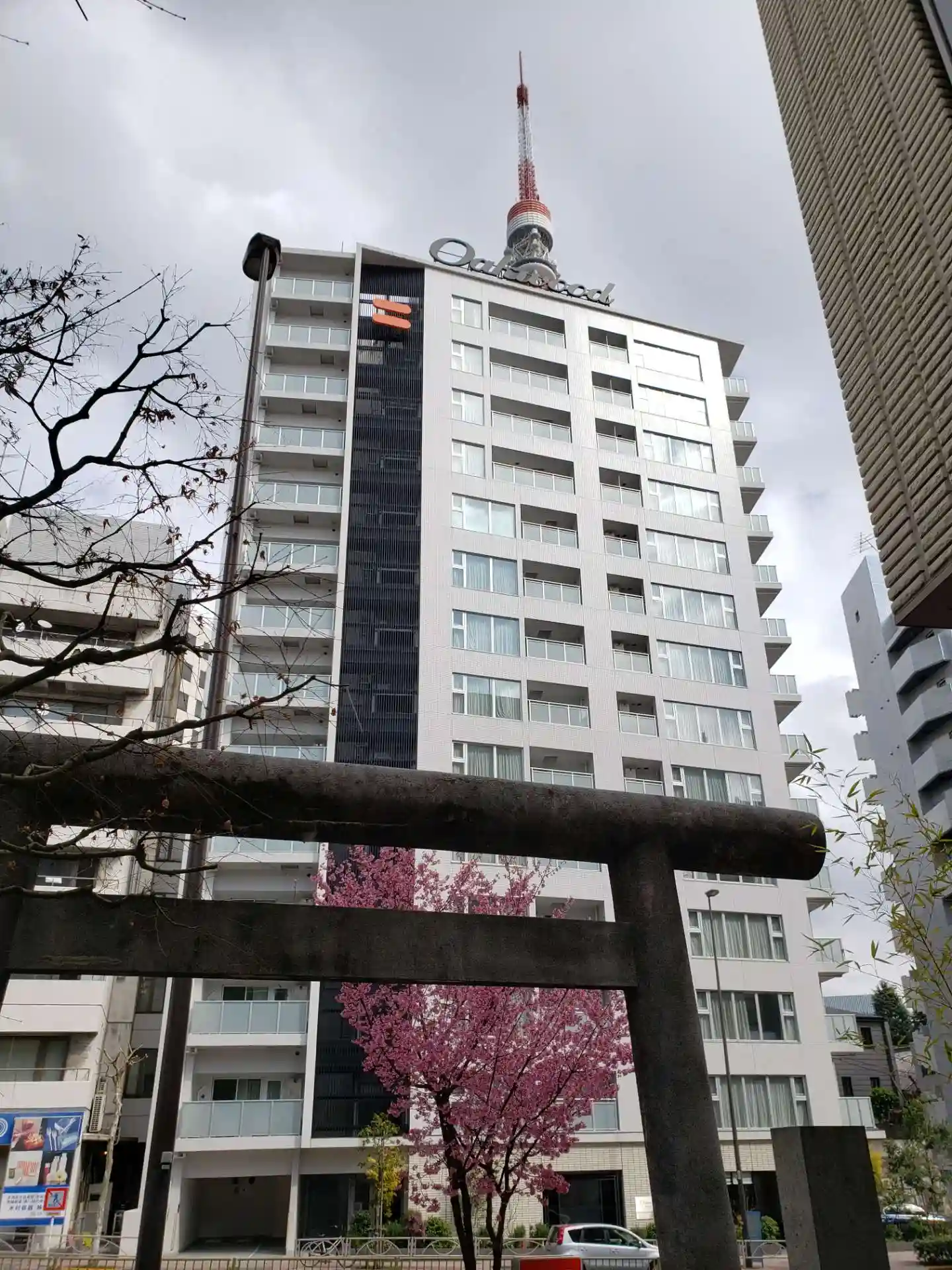 この写真でいうと、桜の背後のマンション裏に東京タワーがあります