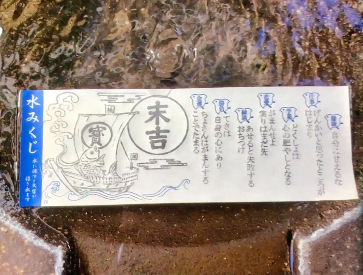 水みくじがあり、カメがありました。
