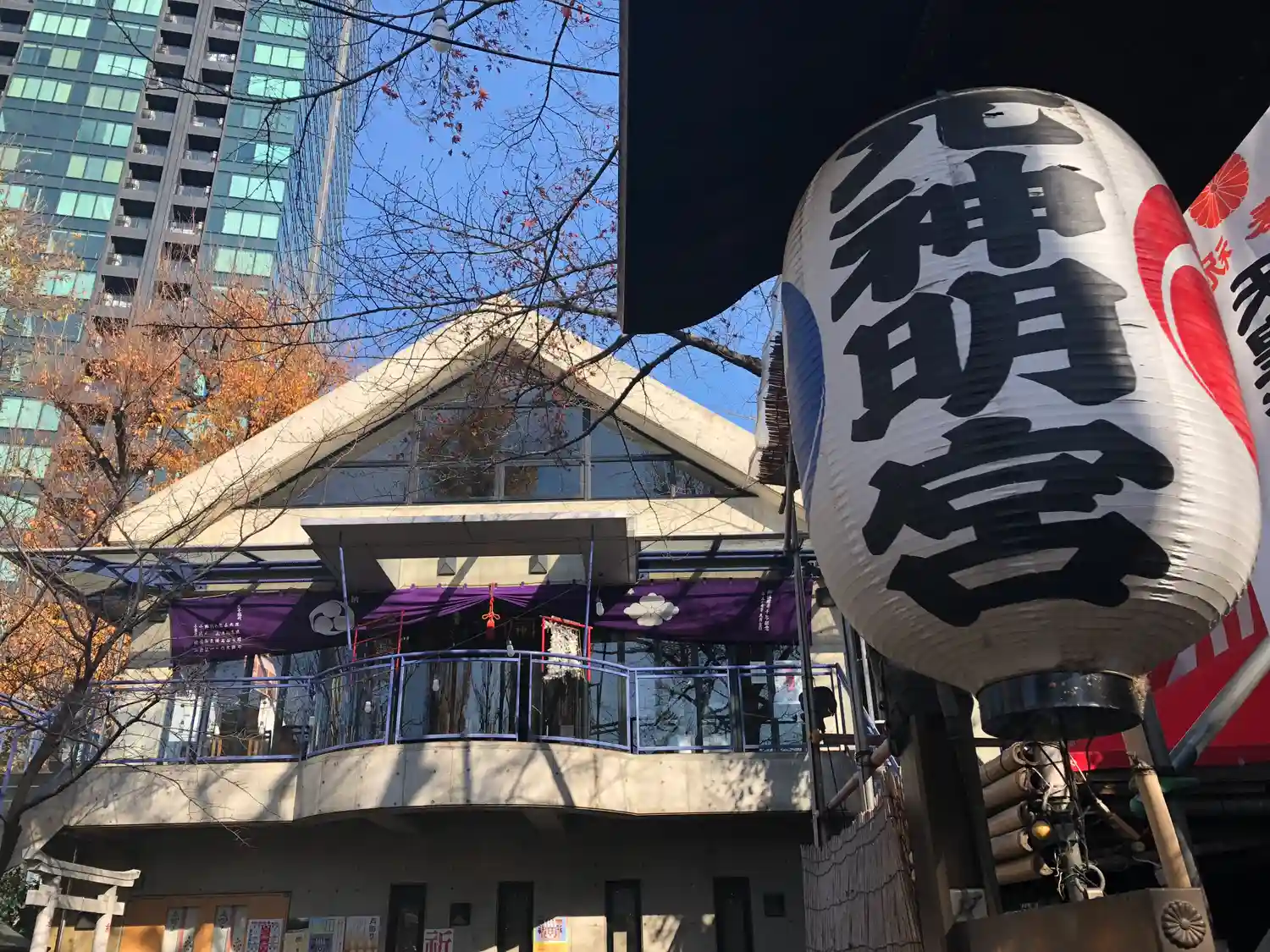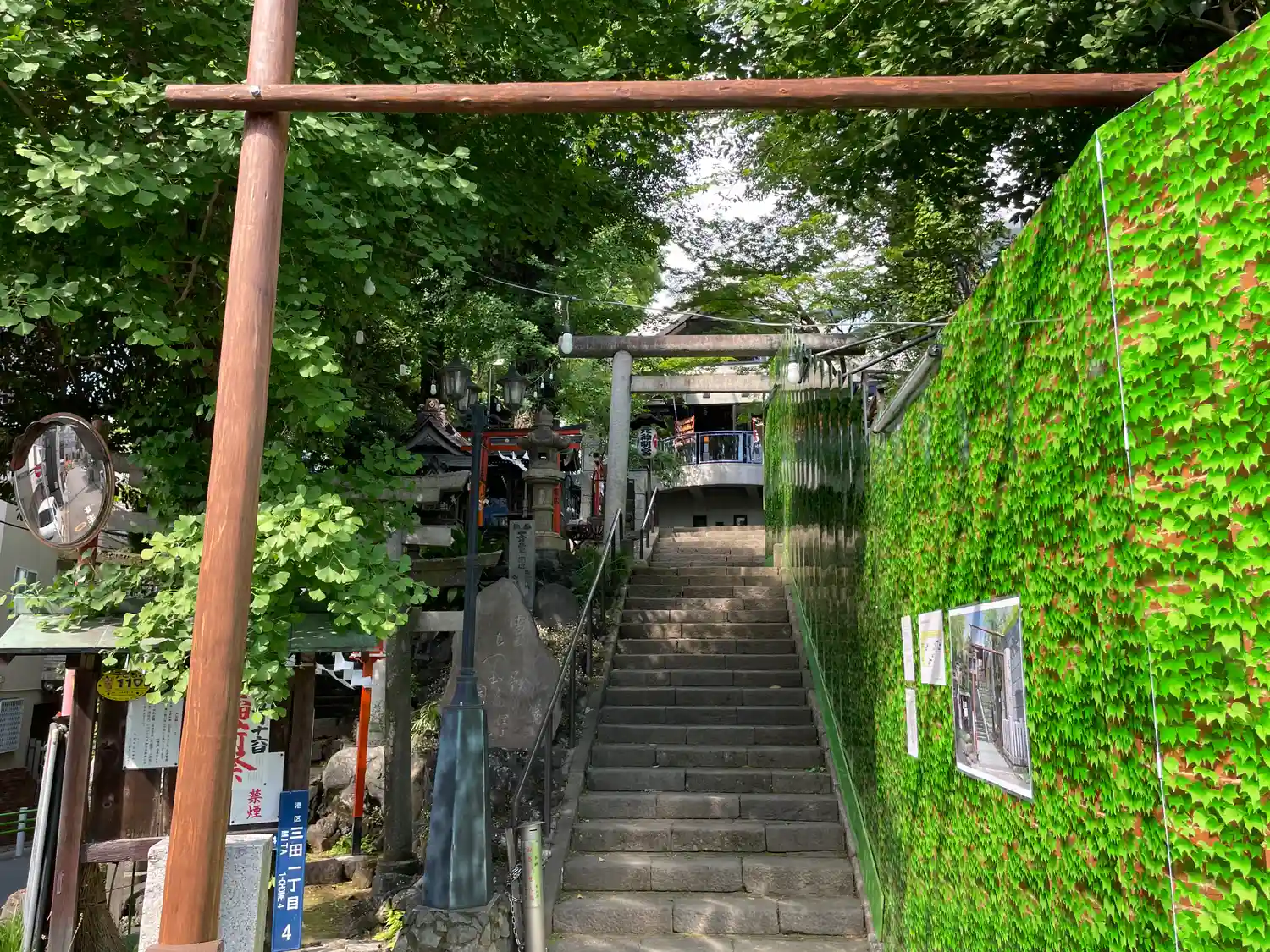 目黒不動尊にお詣りしたあとの帰り道、三田で巡り合った神社です。近年に新しくなったのか社殿が近代的な…