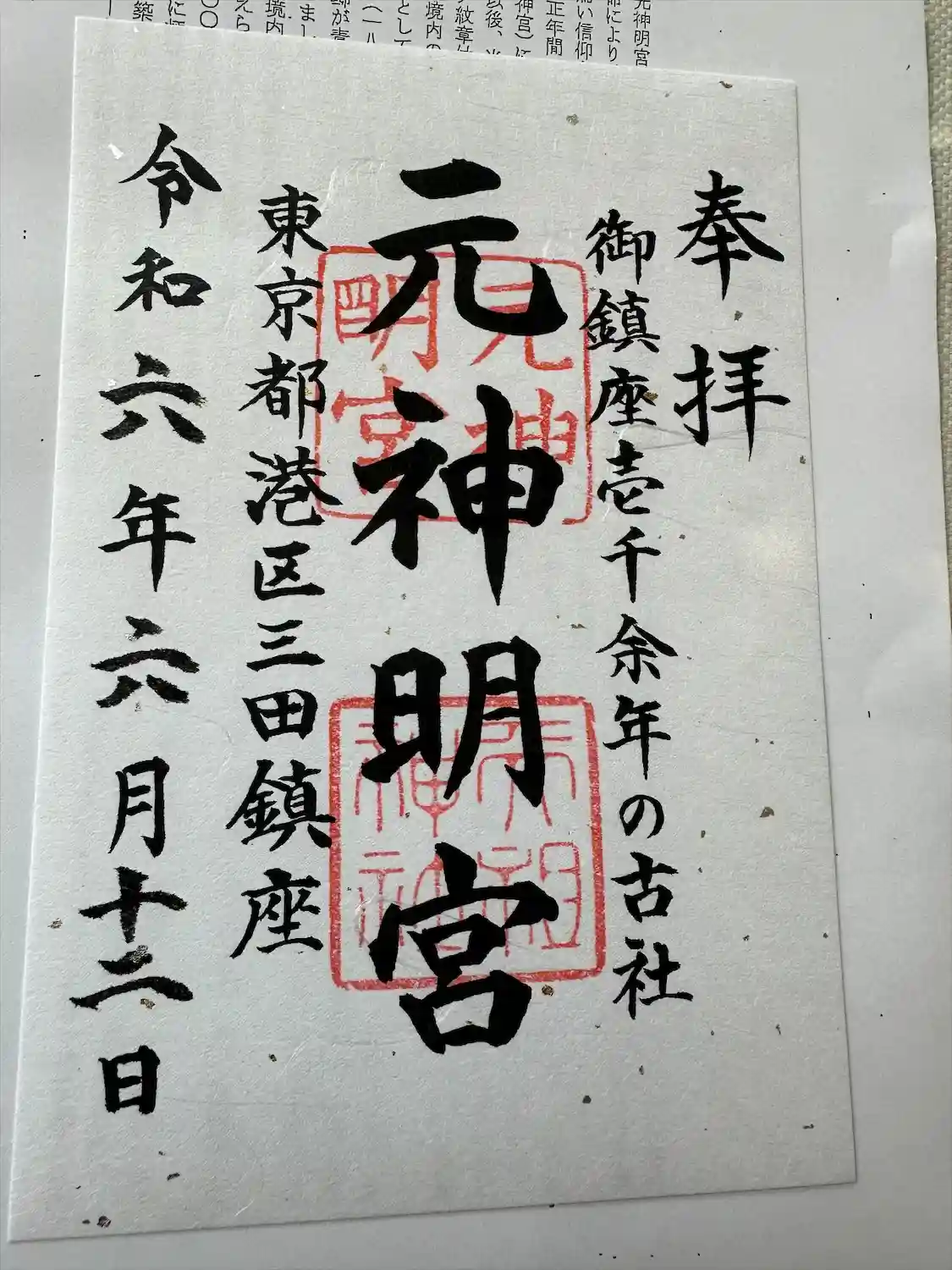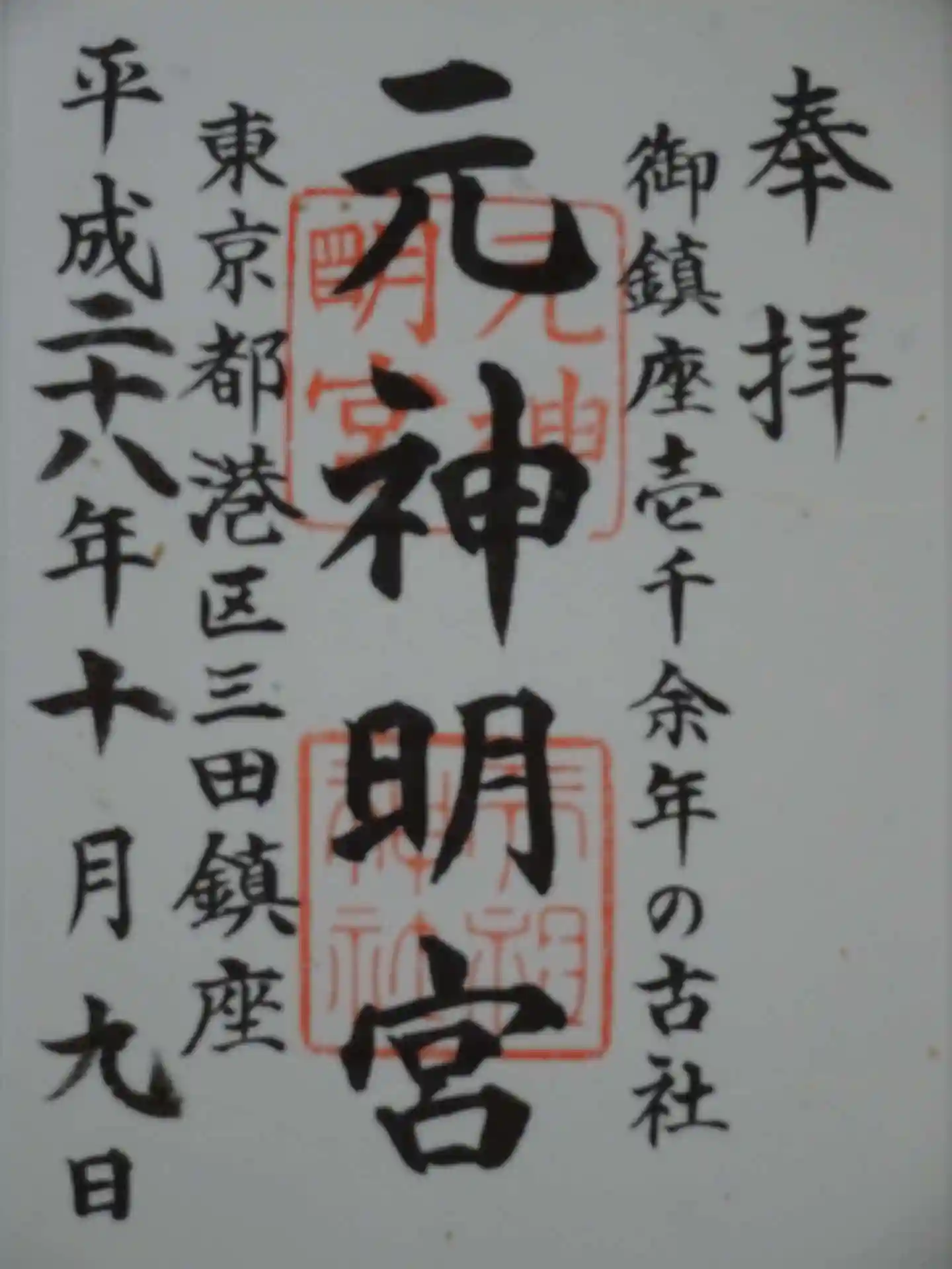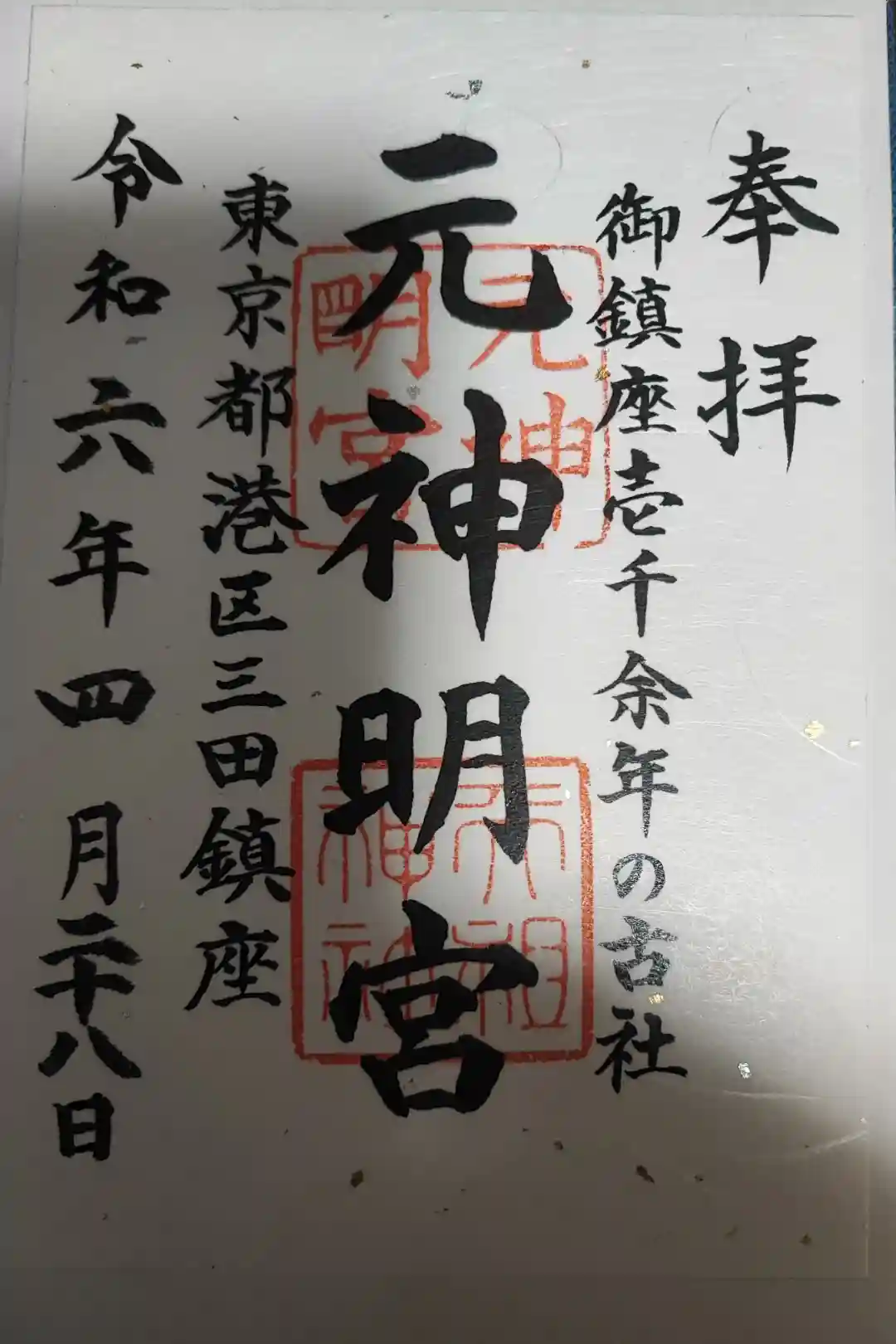 元神明宮天祖神社の御朱印です。
