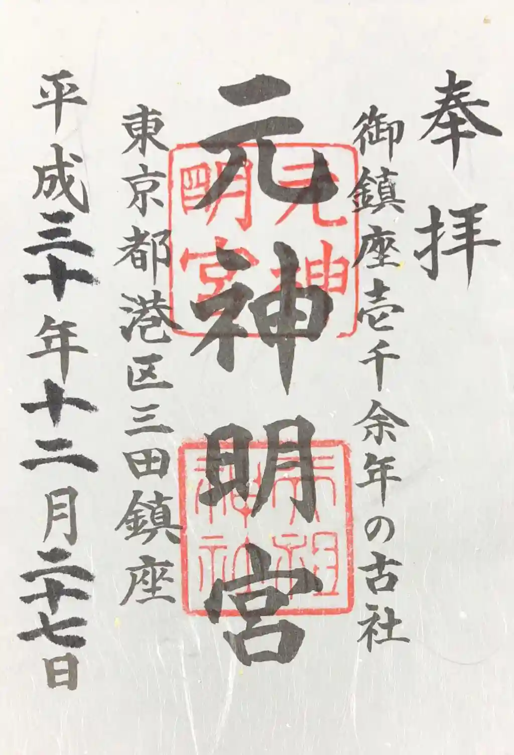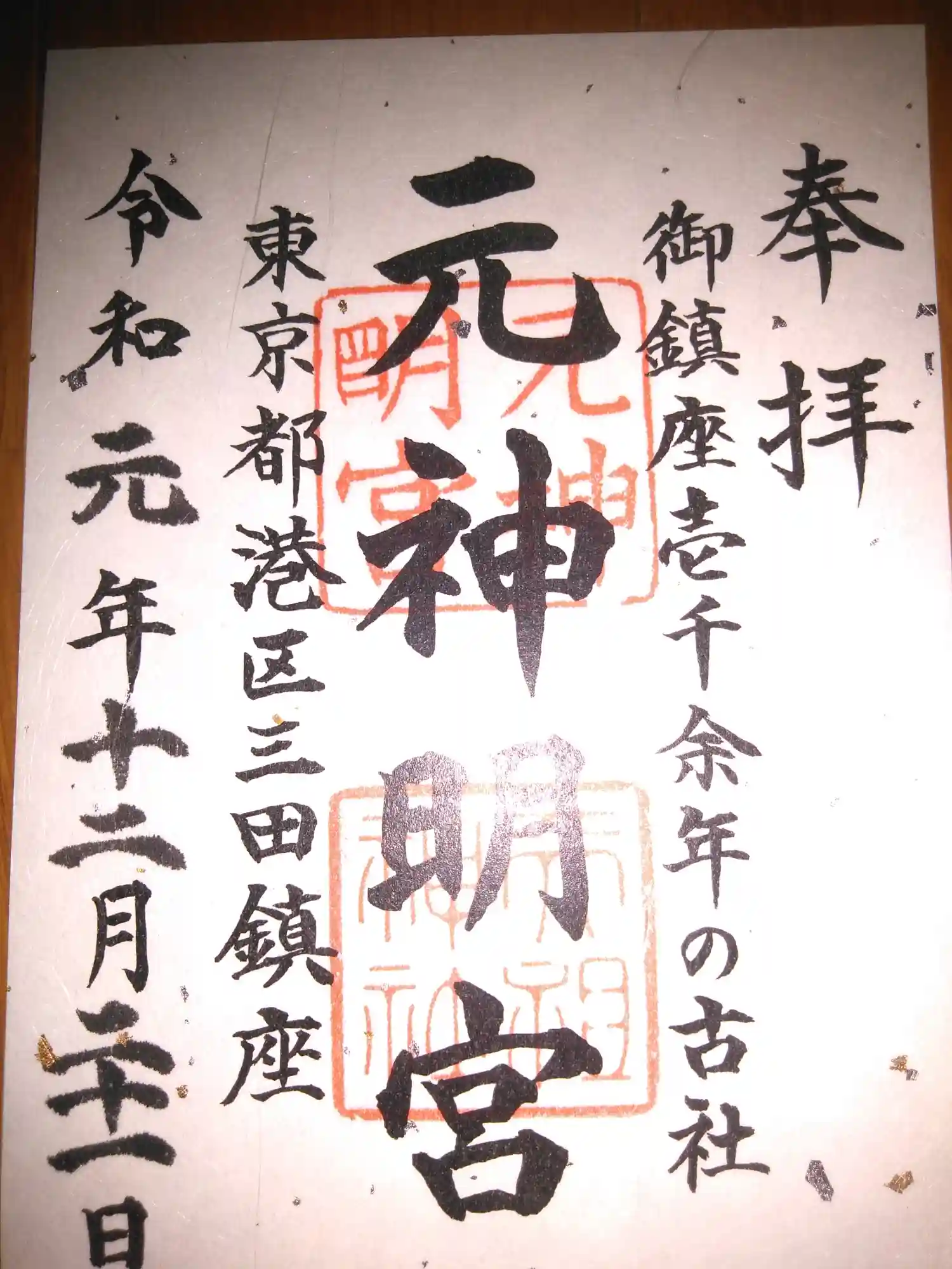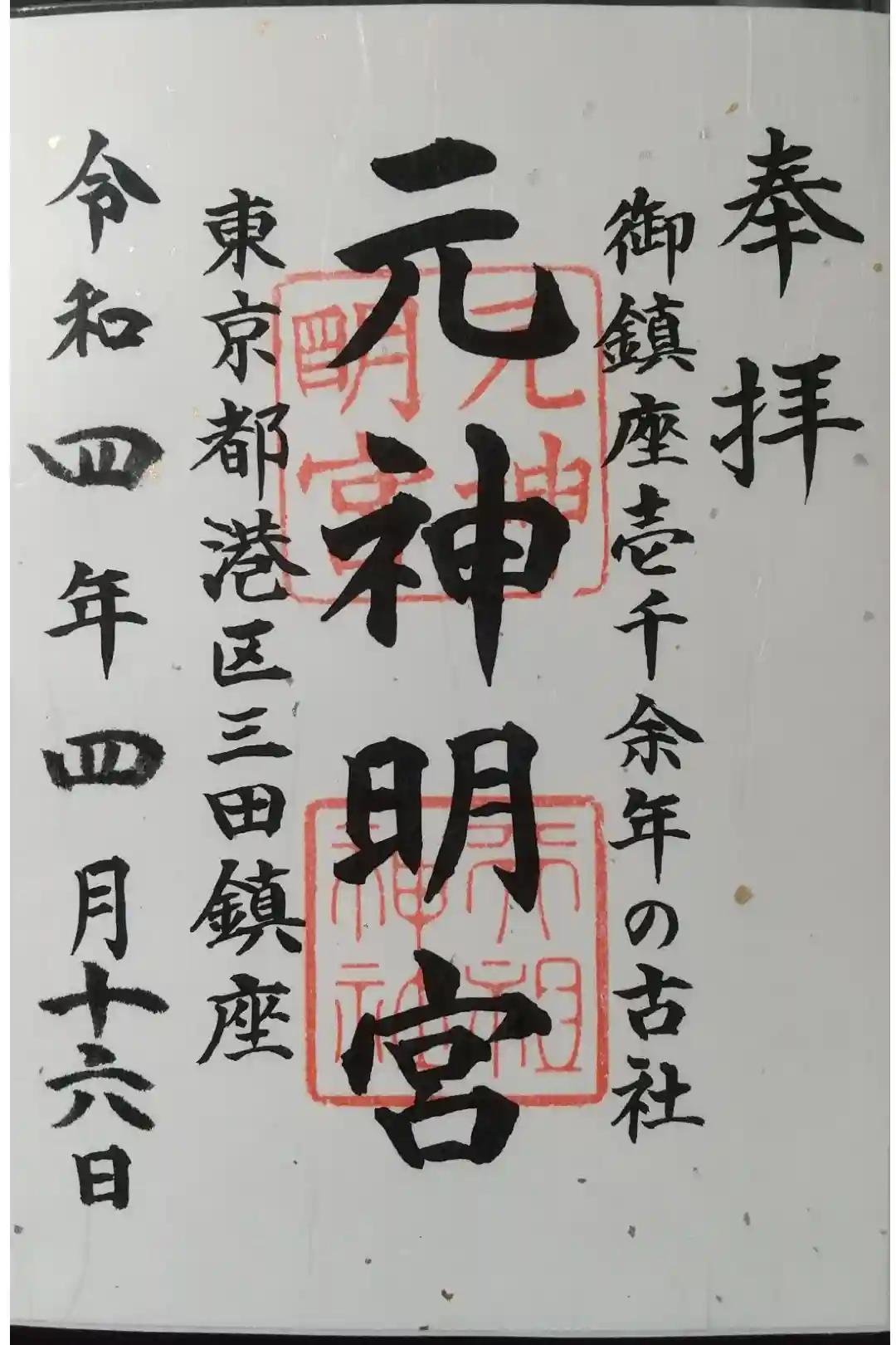 元神明宮天祖神社の御朱印です。