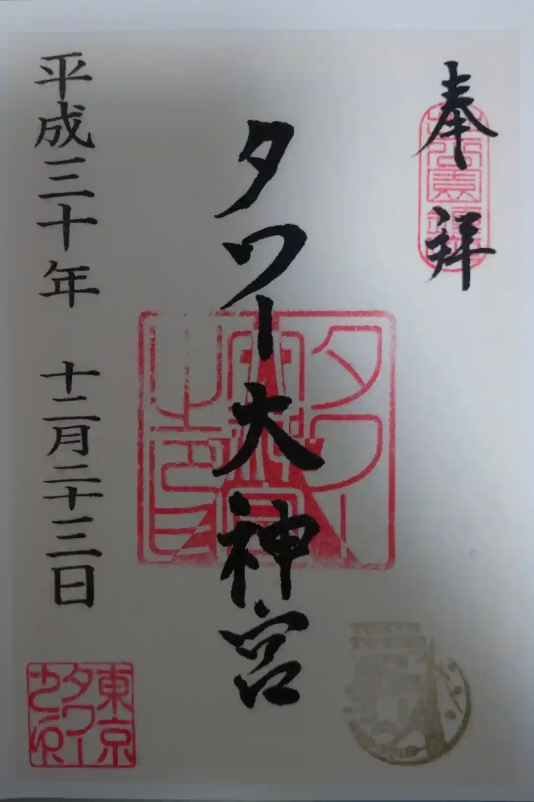 東京タワーのタワー大神宮の御朱印です