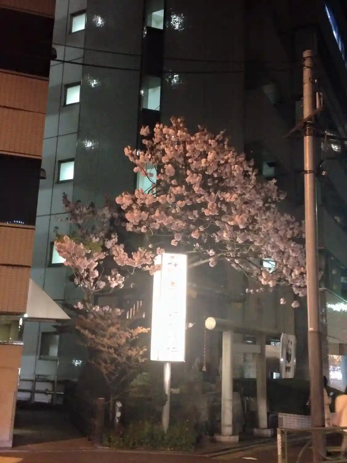 伏見三寳稲荷神社の電照看板で夜桜も綺麗です