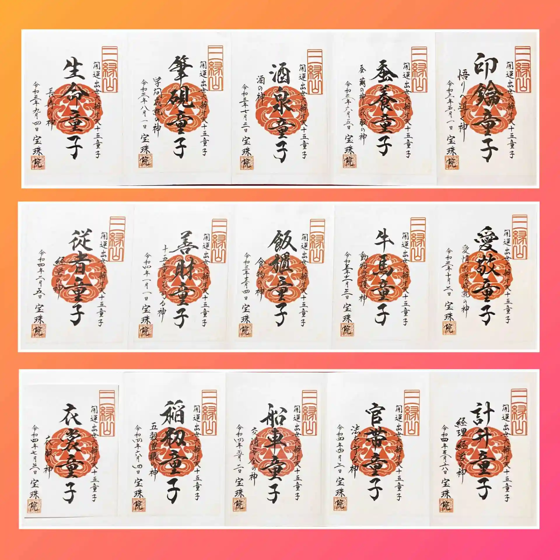 令和3年5月から始まった弁財天十五童子シリーズ御朱印は今回でラスト。