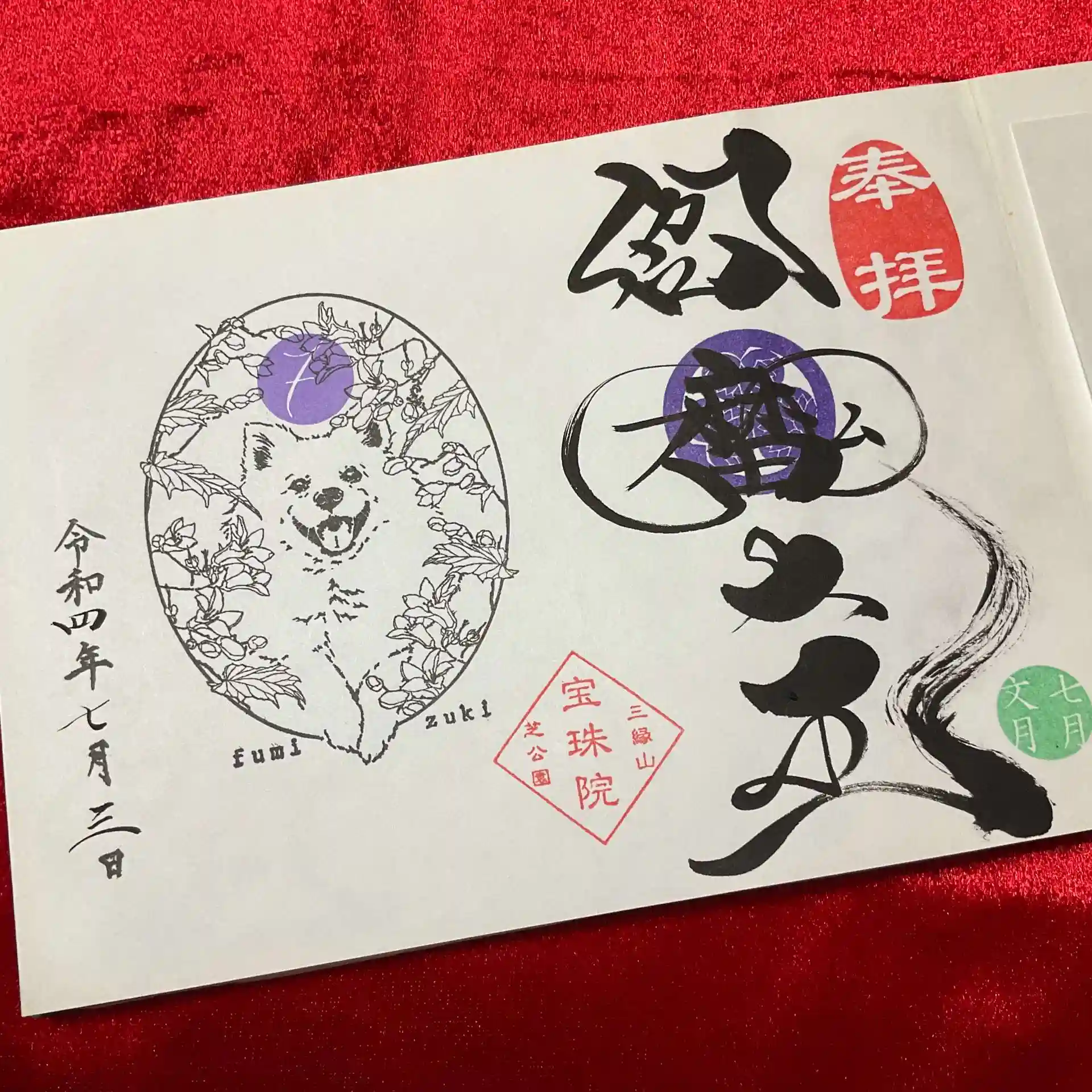 東京都港区の宝珠院様にて、7月の御朱印を頂きました。