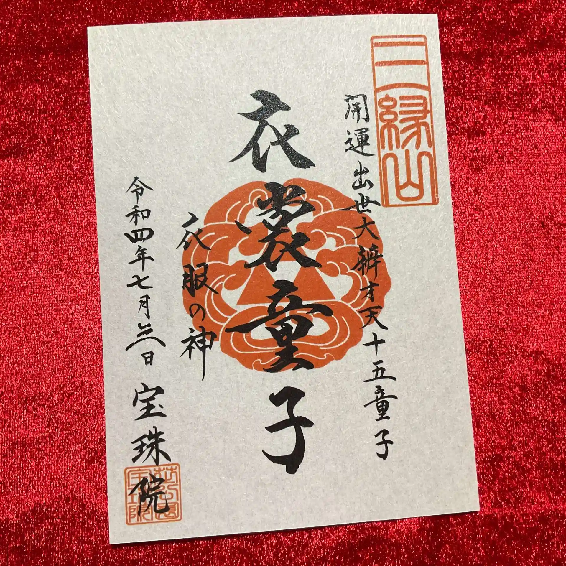 弁財天十五童子の御朱印はNo.15「衣裳童子」。
