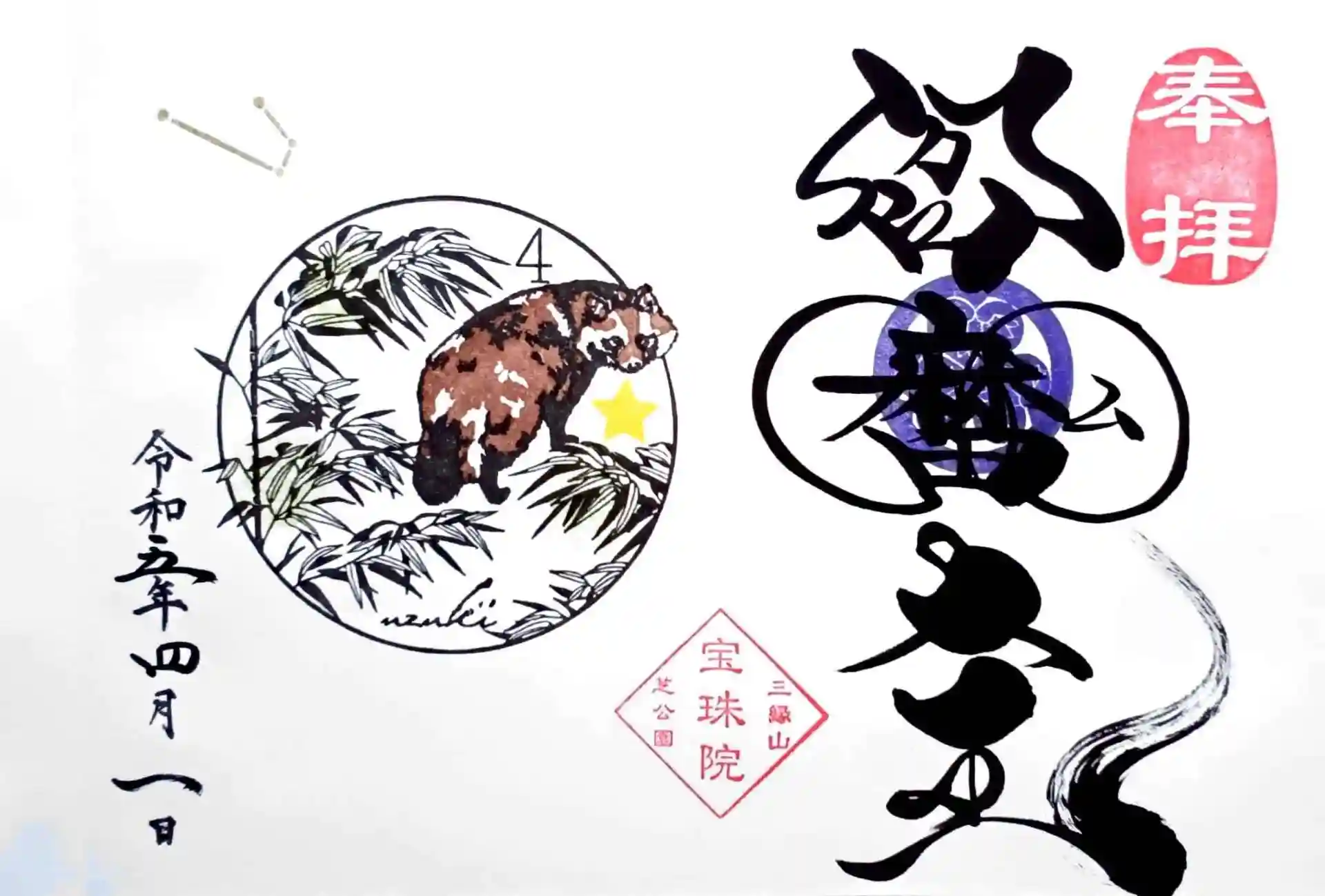 月替り御朱印は「若竹とたぬき」。