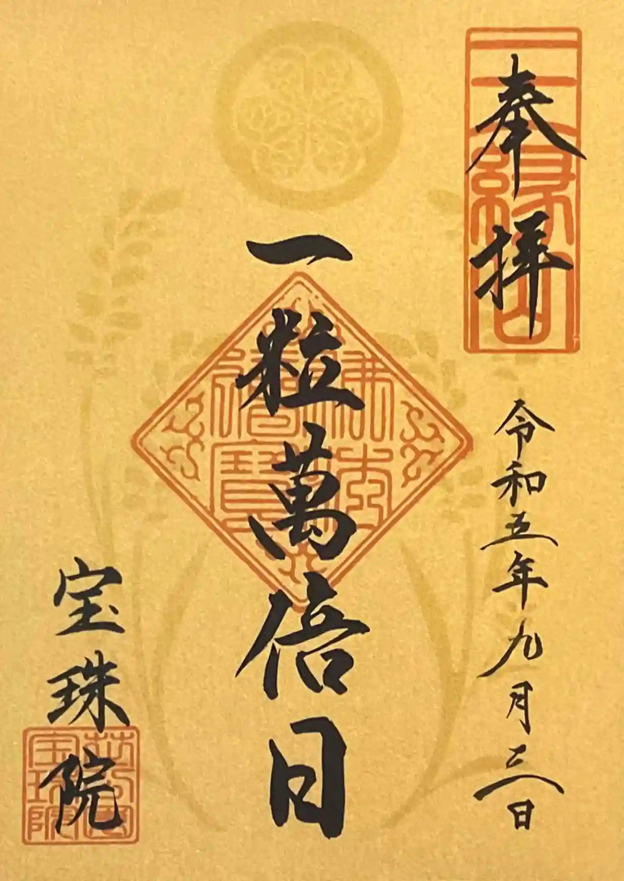宝珠院様では一粒万倍日にその限定御朱印をいただけます。