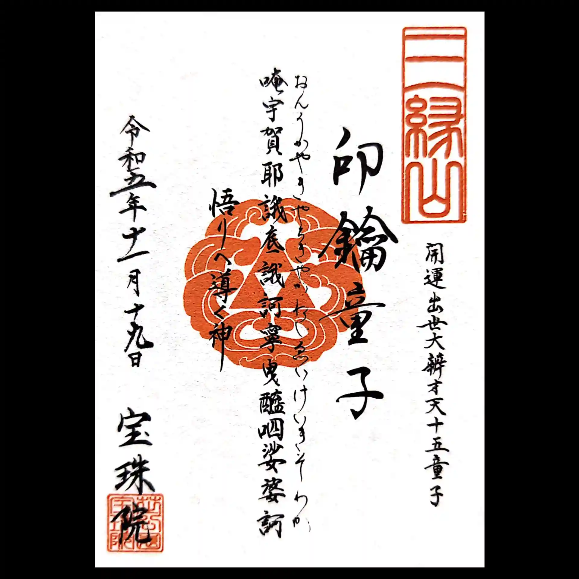 宝珠院様で巳の日の御朱印をいただきました。