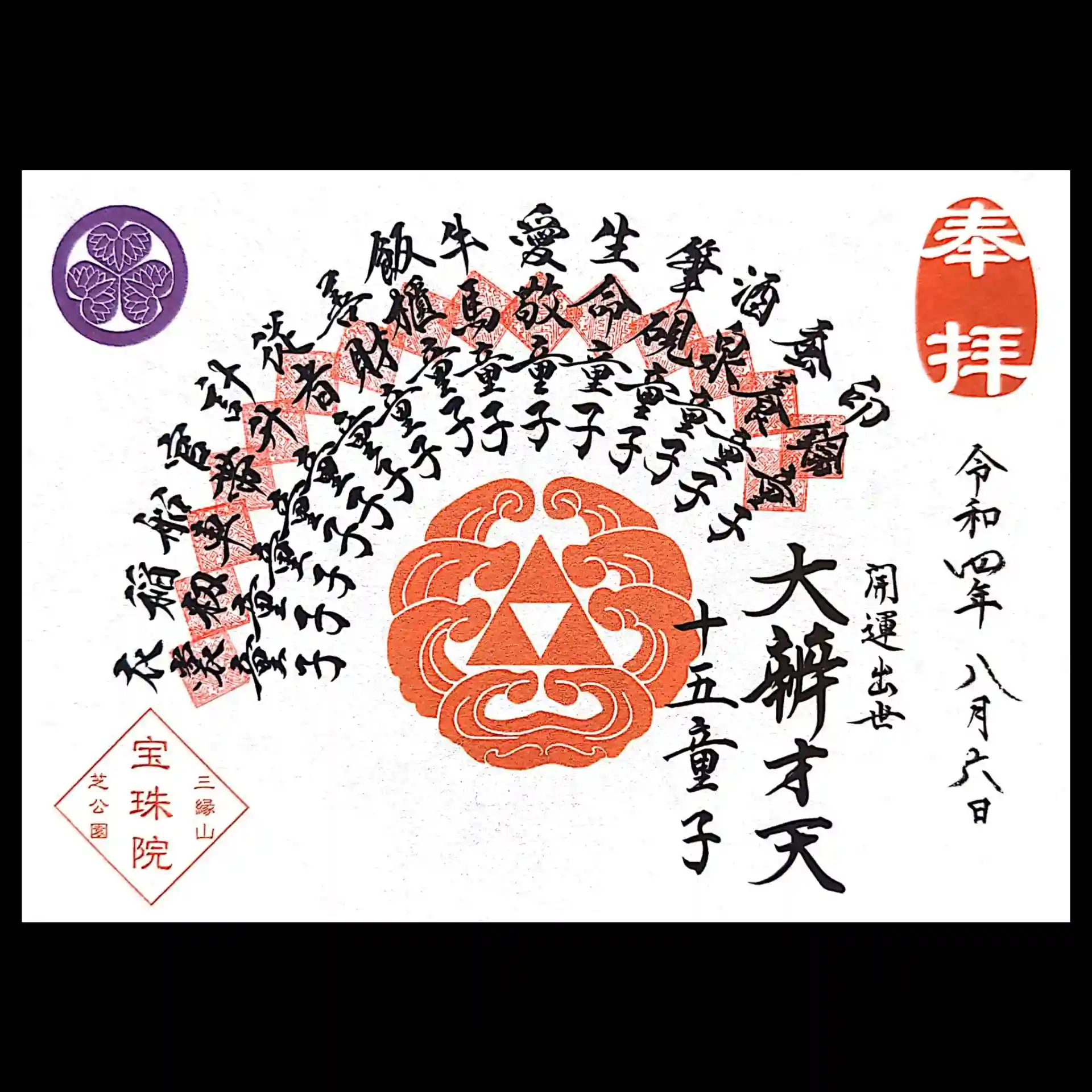 どうしようか悩んでいた弁財天十五童子御朱印の3巡目。