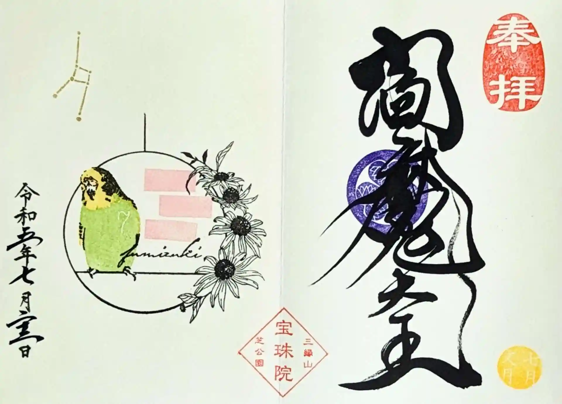 12月『セキセイインコとルドベキア•かに座』 阿弥陀如来
