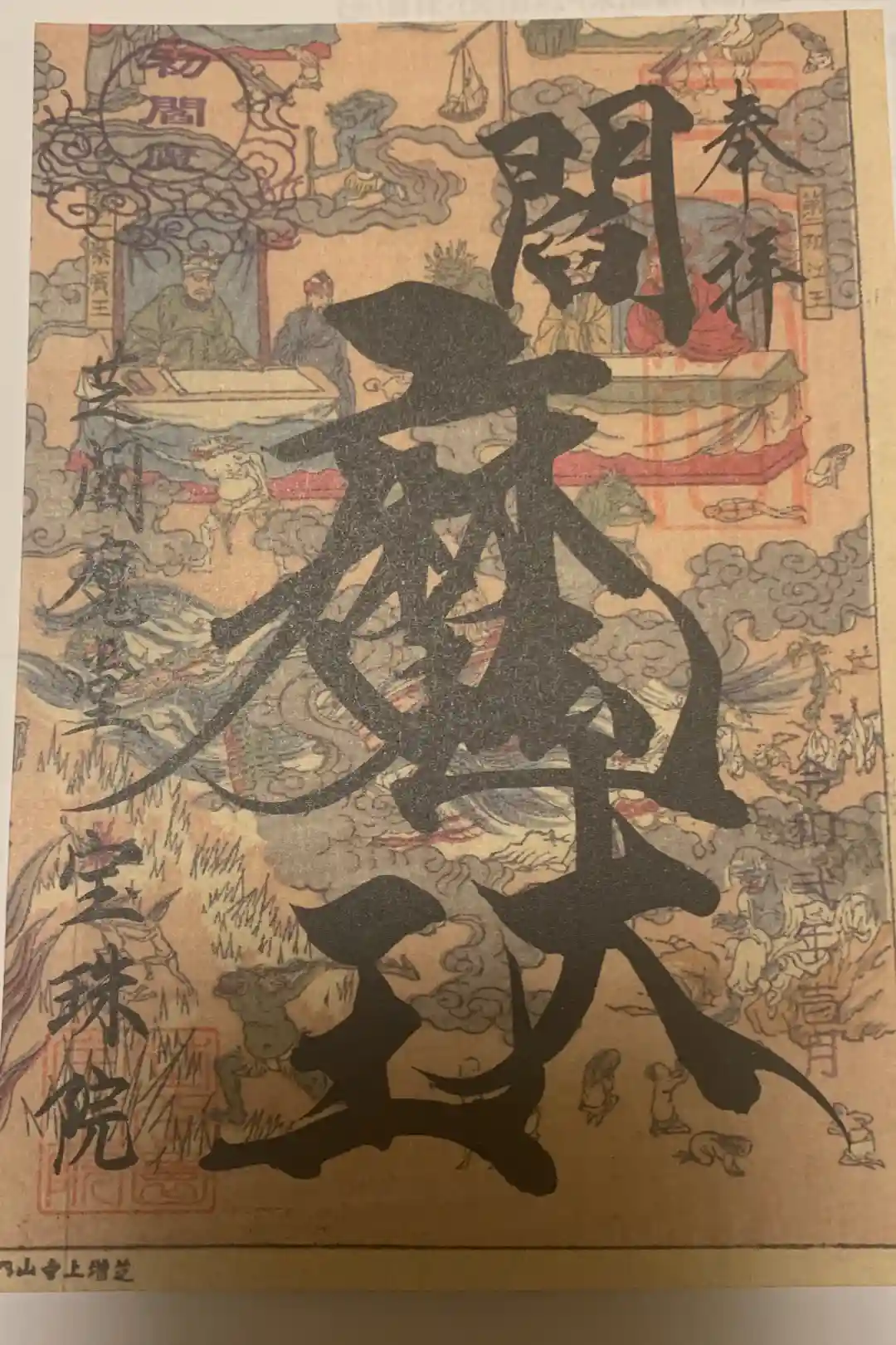 4枚繋げると地獄絵図になります。こちらの地獄絵図見たかったのですが御開帳の間に来られなかったので、御朱印をいただきじっくり眺めます。