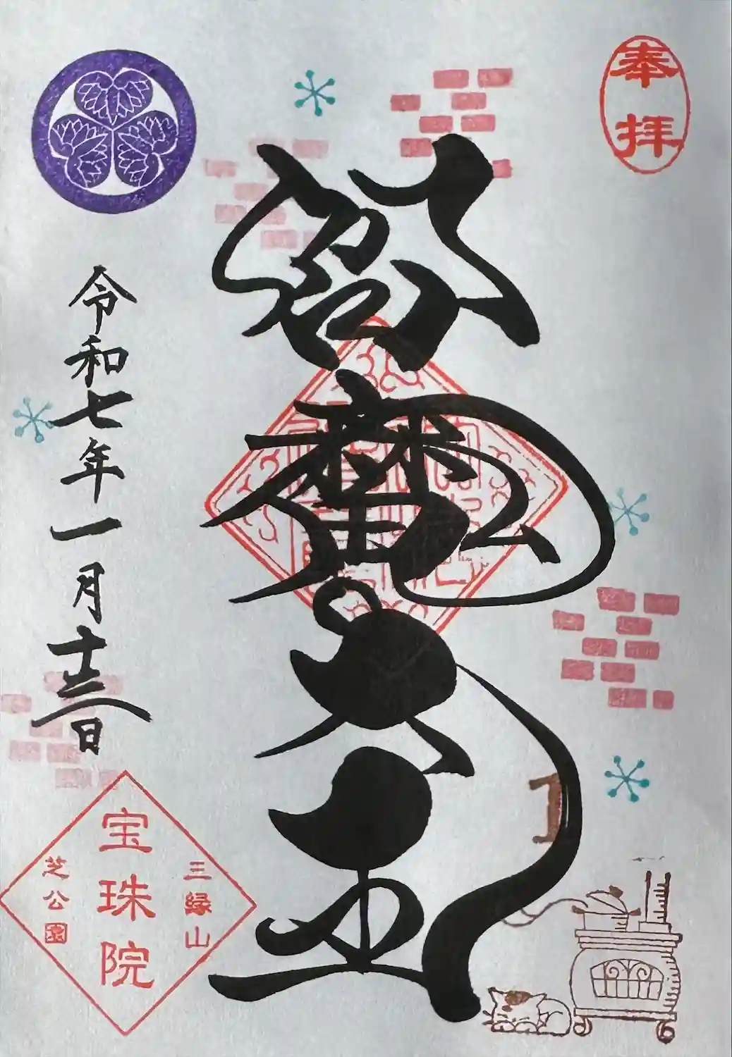 令和7年 月替り御朱印 1月『薪ストーブと子猫』