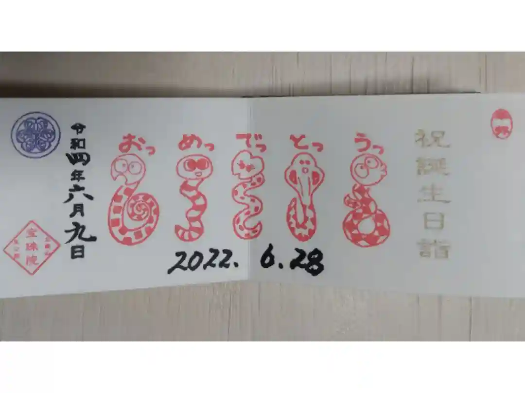 豆御朱印二面、祝誕生日詣。お誕生日おめでとう御朱印。巳(蛇)の絵