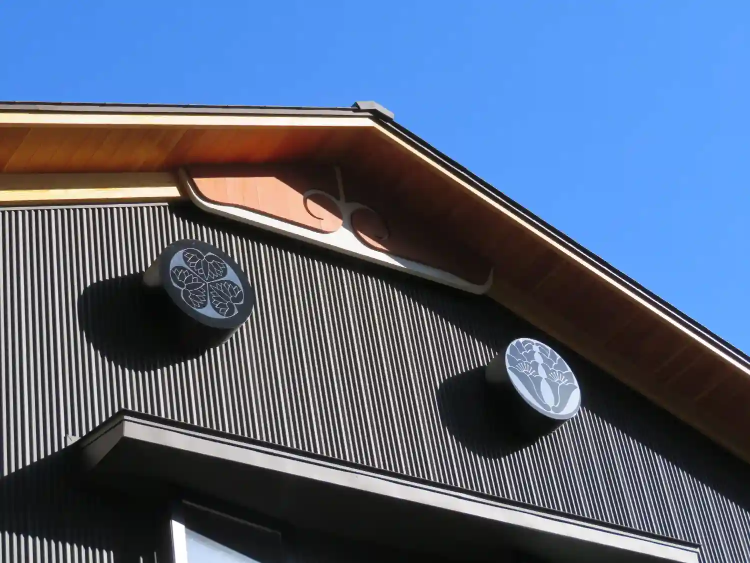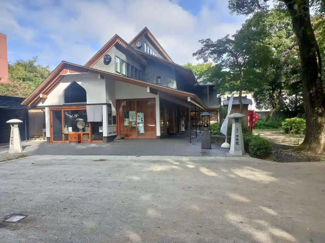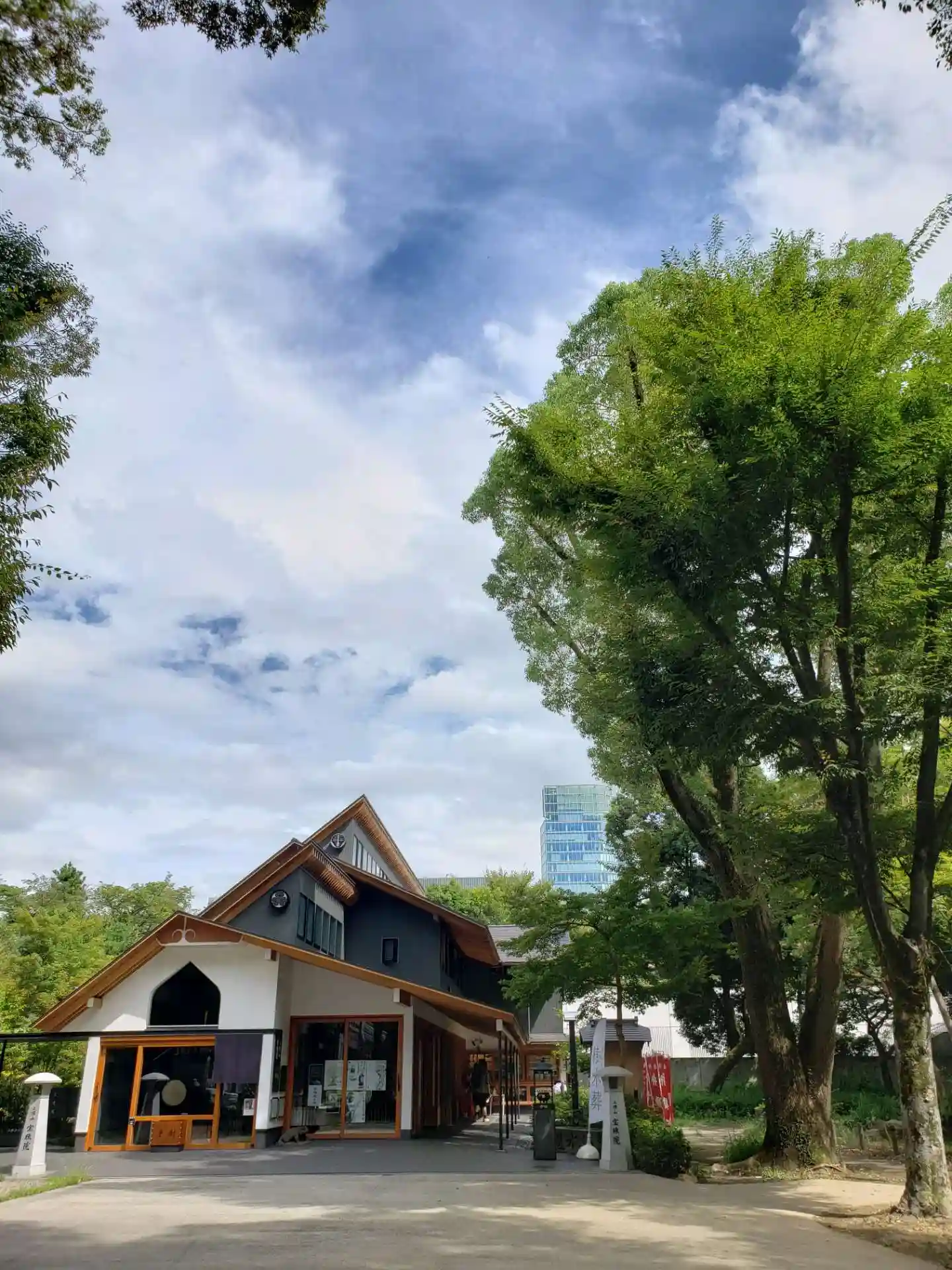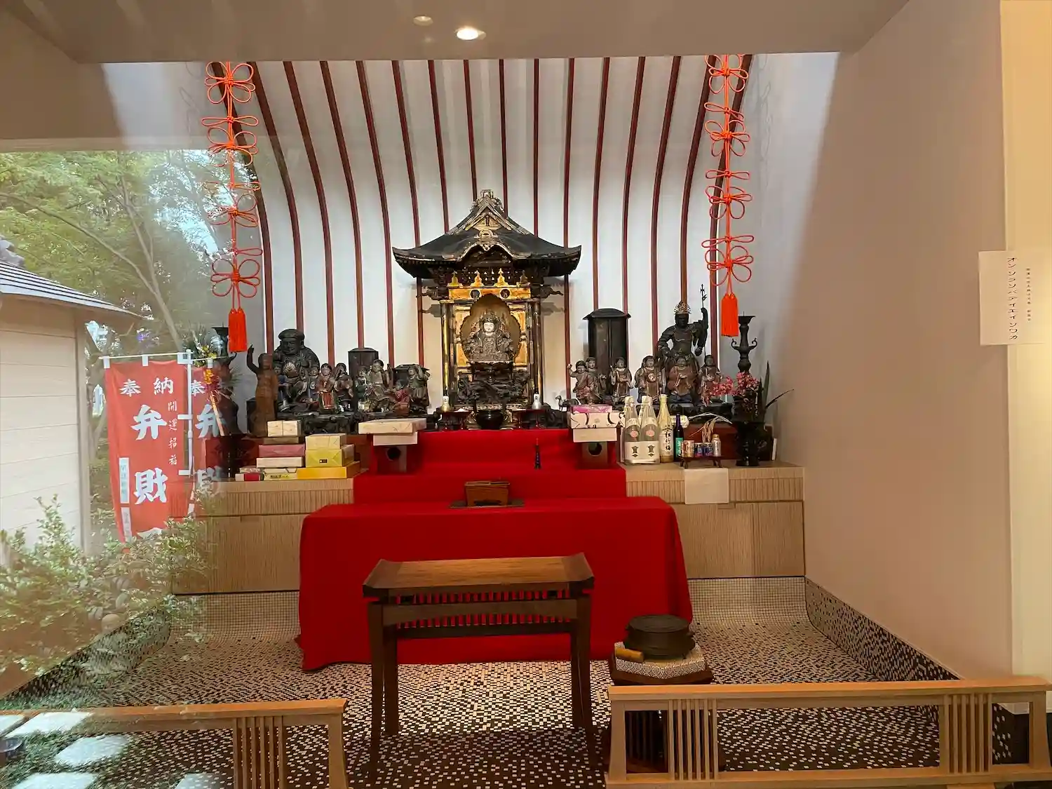 横から見た寺院全景。都会のカフェレストランそのもの。ただ、黒・茶(材木色)・白の配色がナチュラルで嫌みはない。