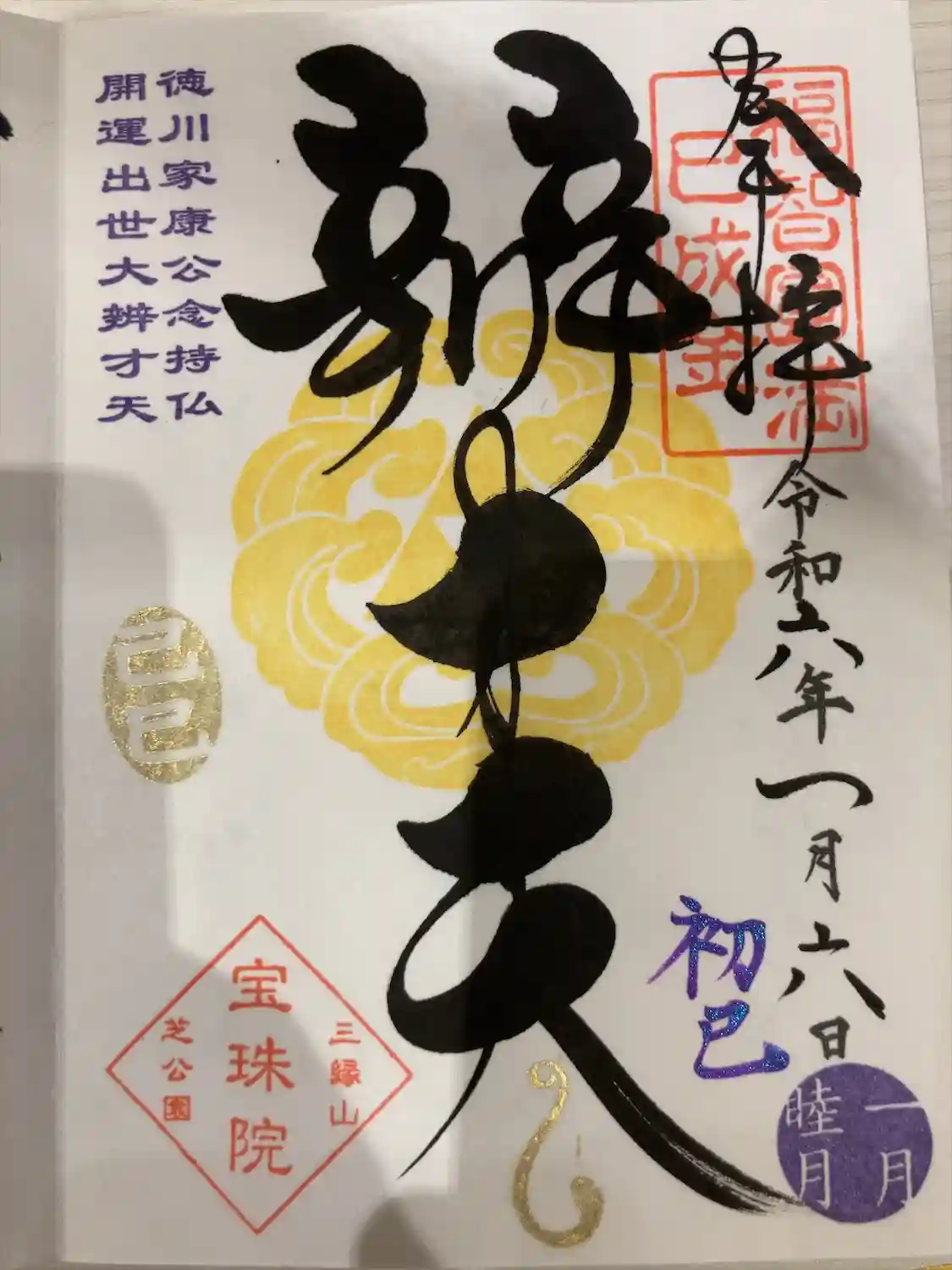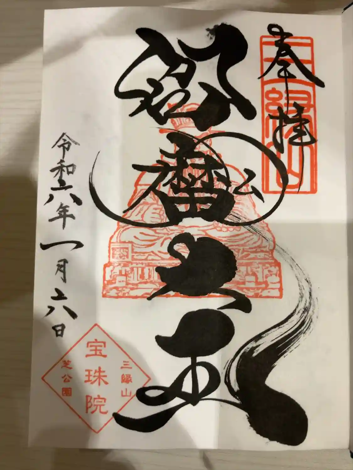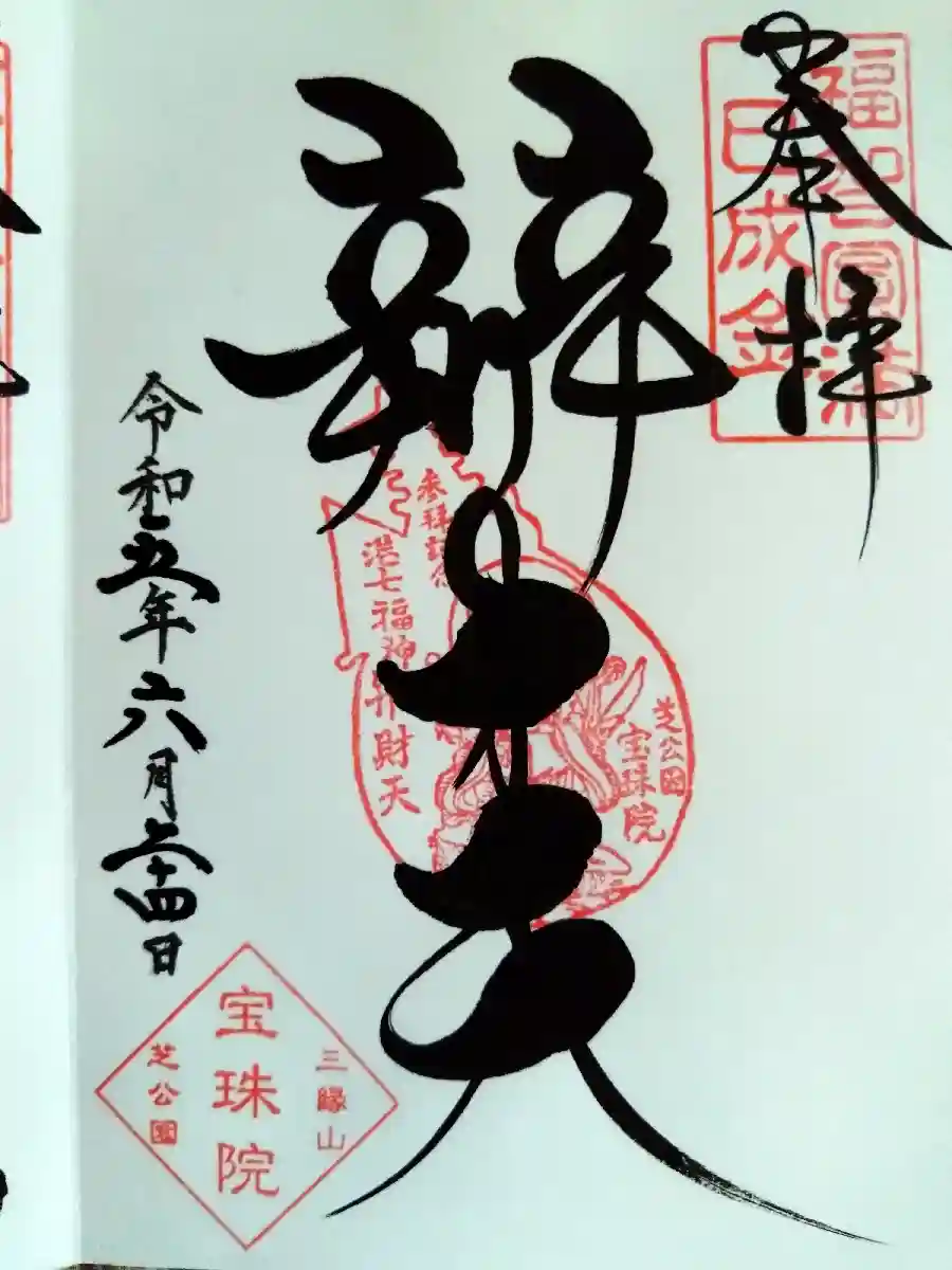 港区芝公園の宝珠院さんで、12月の月替り御朱印を頂きました。