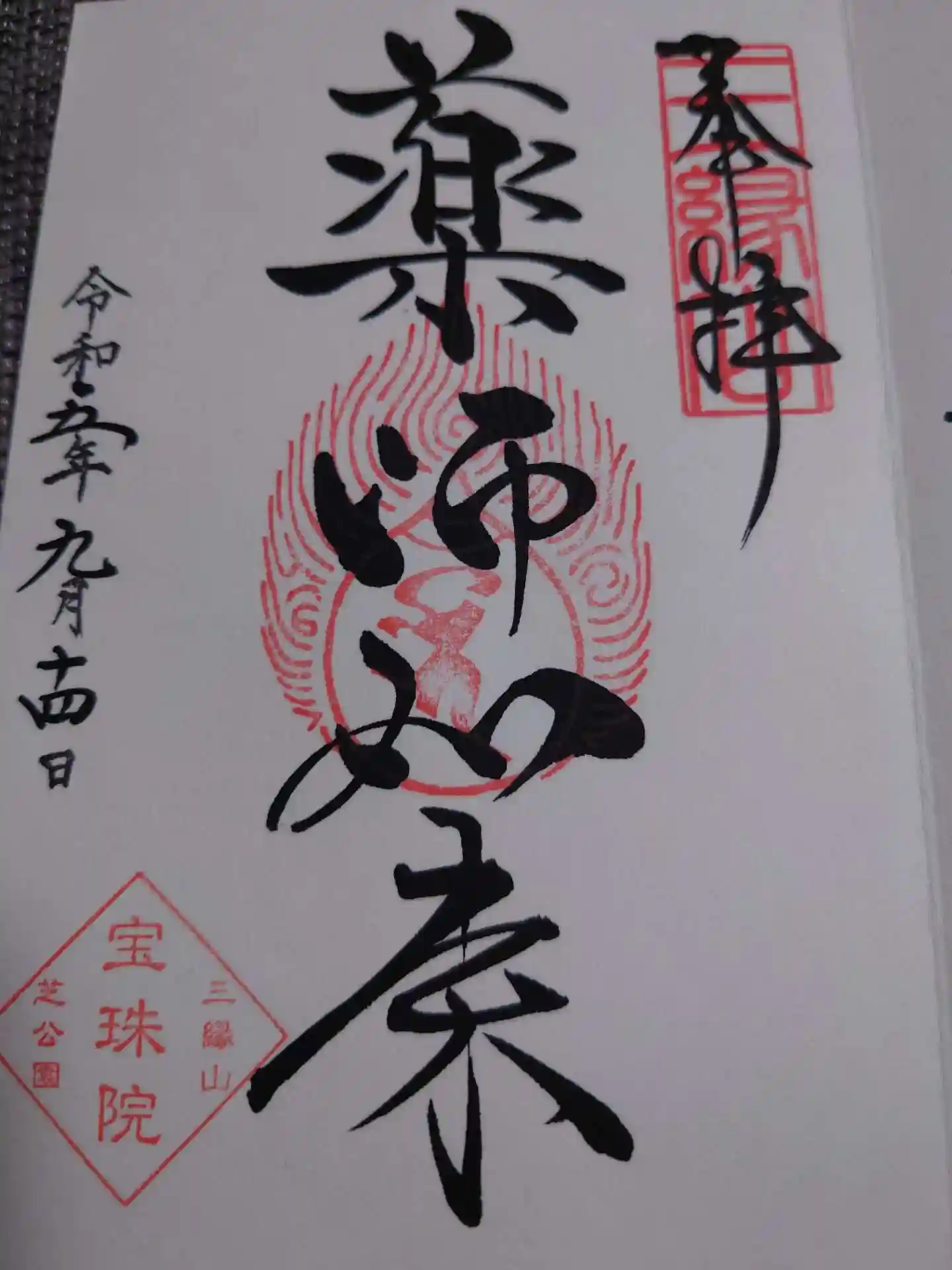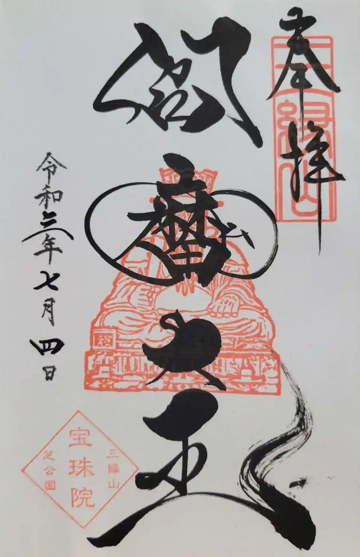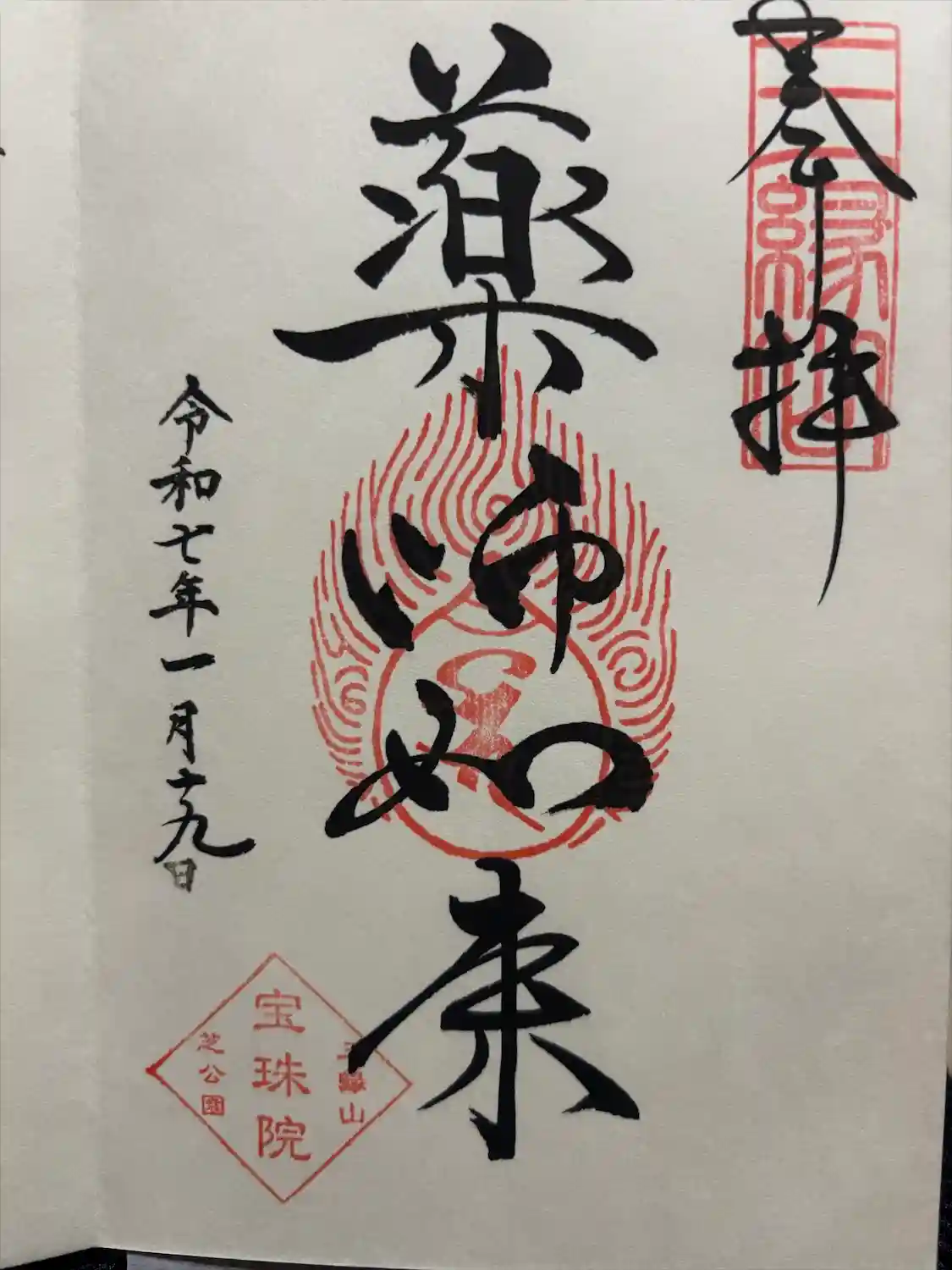 港区芝公園の宝珠院さんで、12月の月替り御朱印を頂きました。