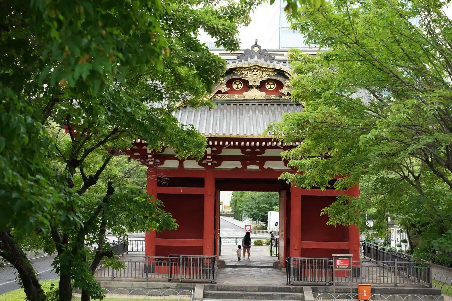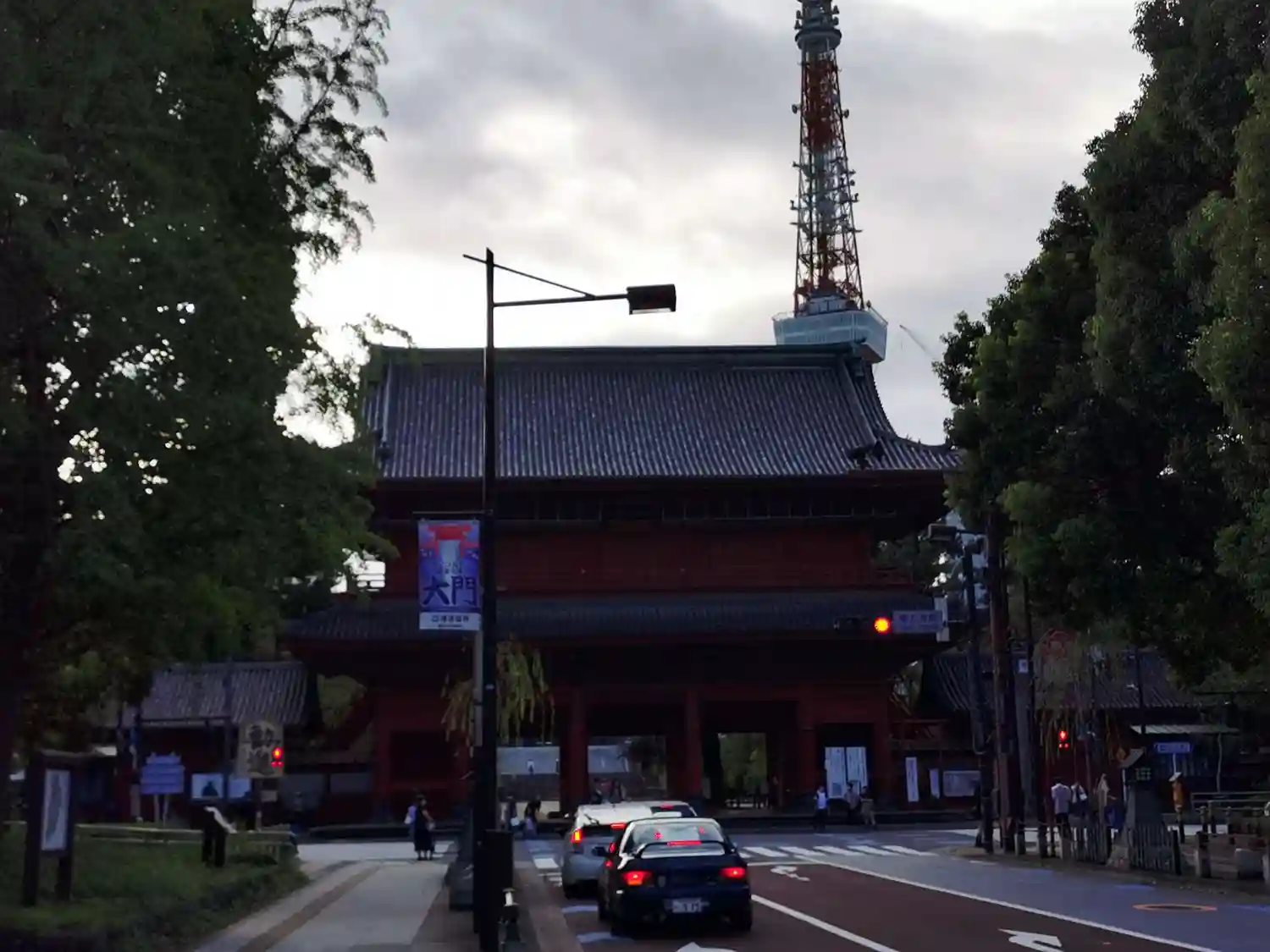 横の列全景と屋内参道。背後には東京タワー。