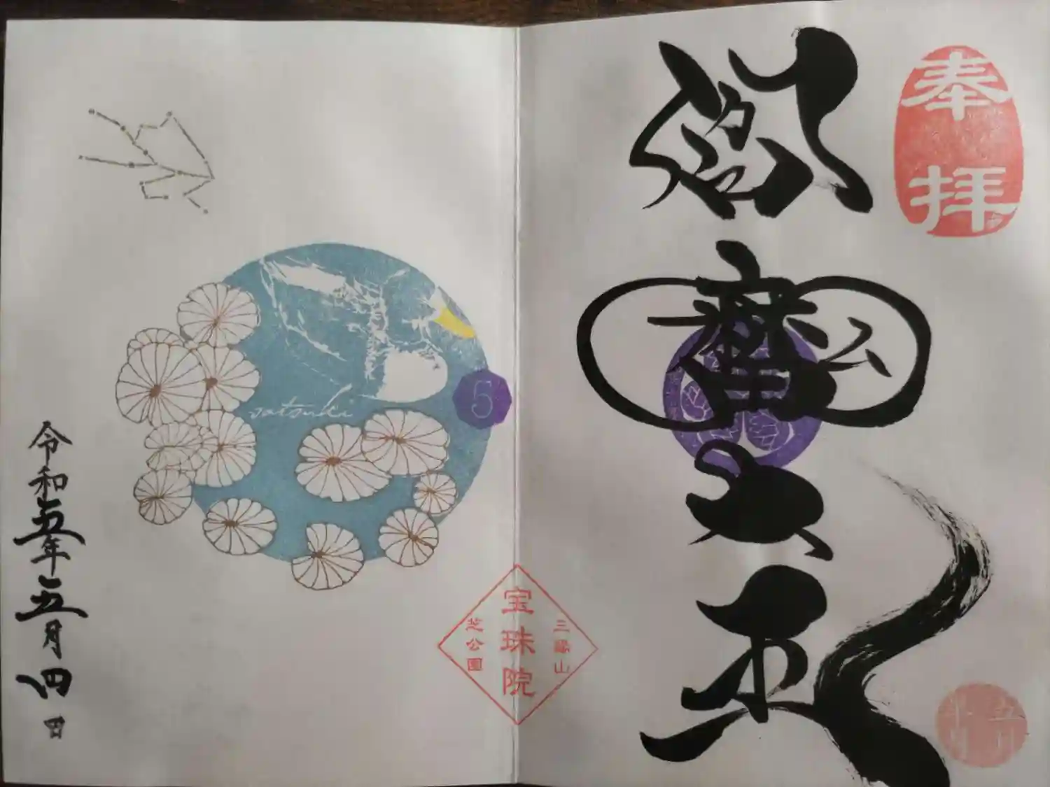 写真上のミニ御朱印帳は、宝珠院様オリジナルではなく、