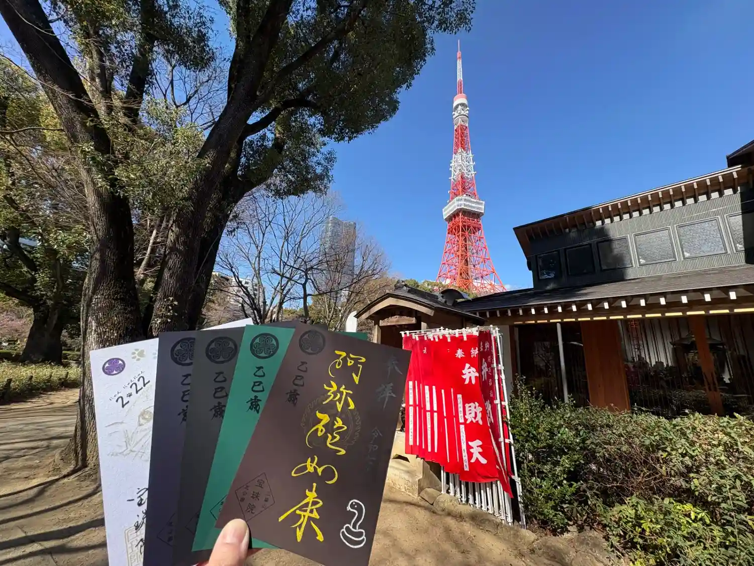 東京タワーの足元、閻魔様、弁財天、阿弥陀如来が祀られています。特別開帳で参拝。公園や池が周りにあっ…