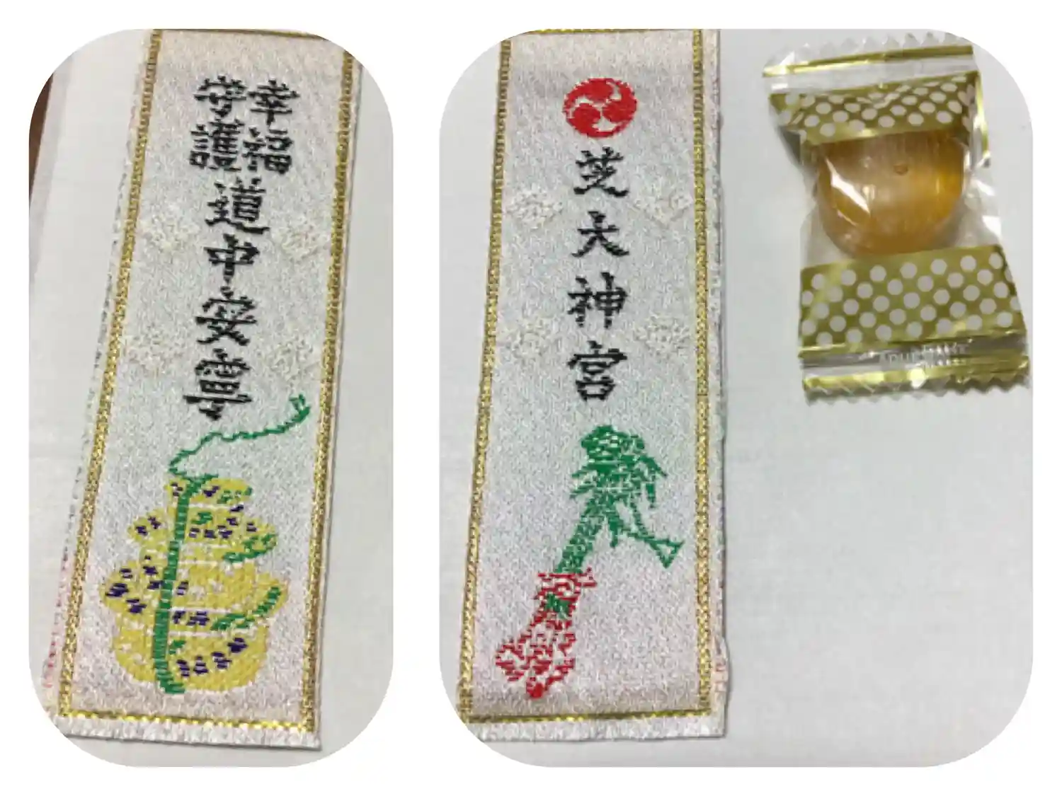 いただいたお守り(裏表)と生姜飴