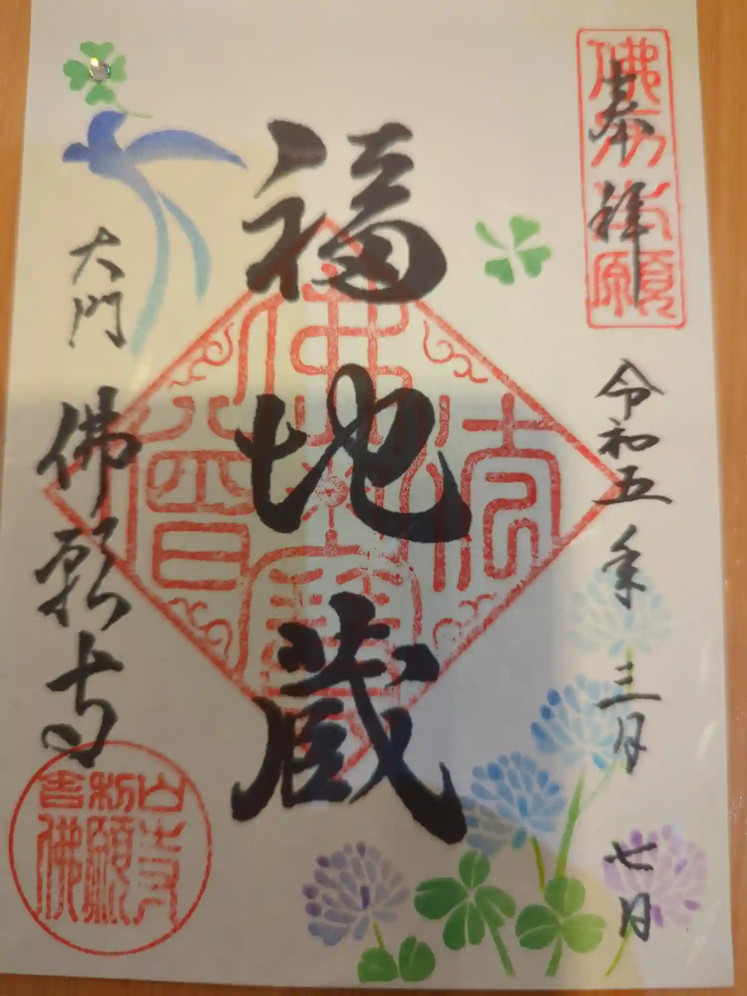 裏口にいます福地蔵の御朱印です。こちらは5月いっぱいとのこと