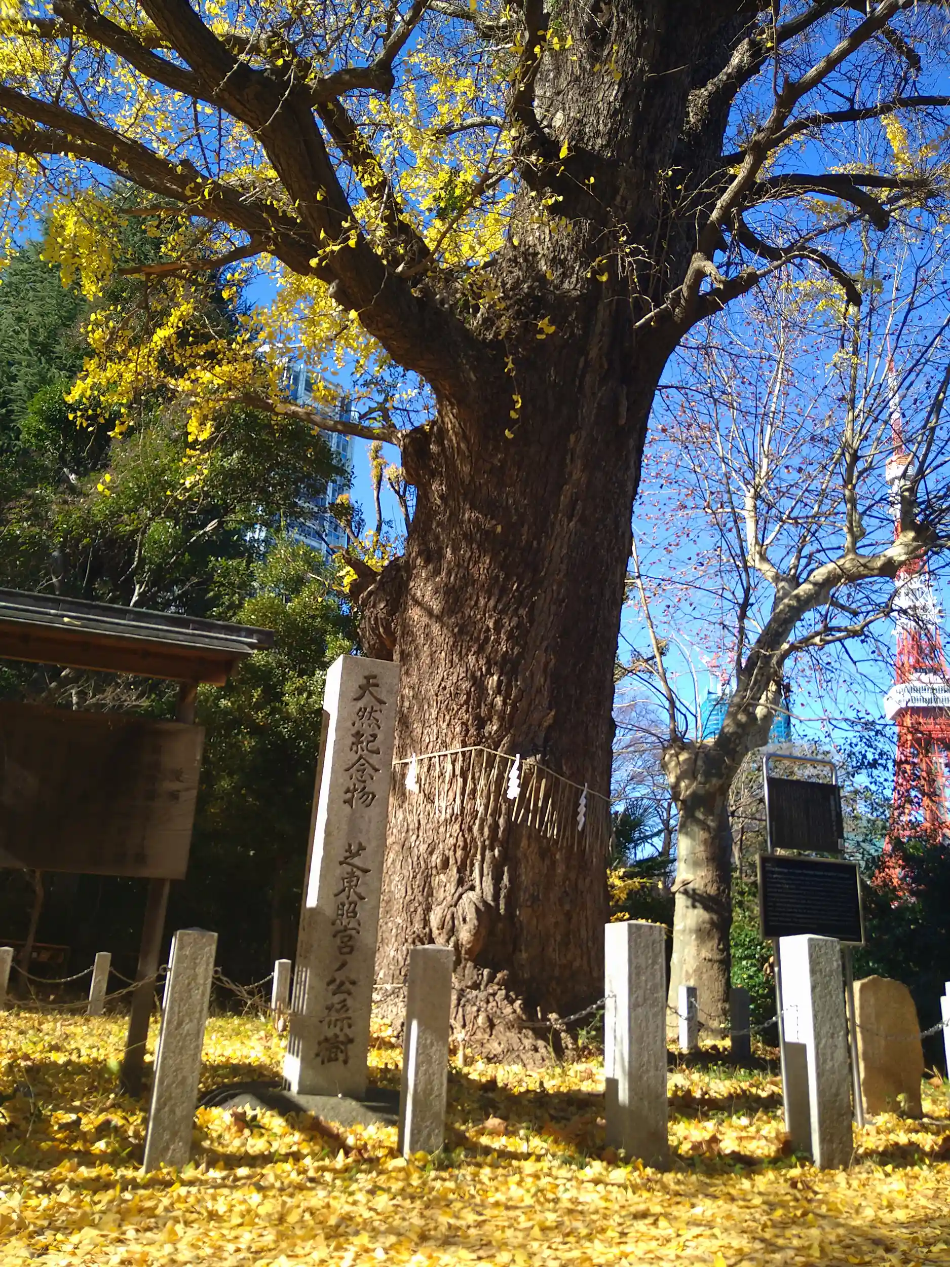 鳥居をくぐり境内に入ると右手に「天然記念物の公孫樹」が居座ってます。
