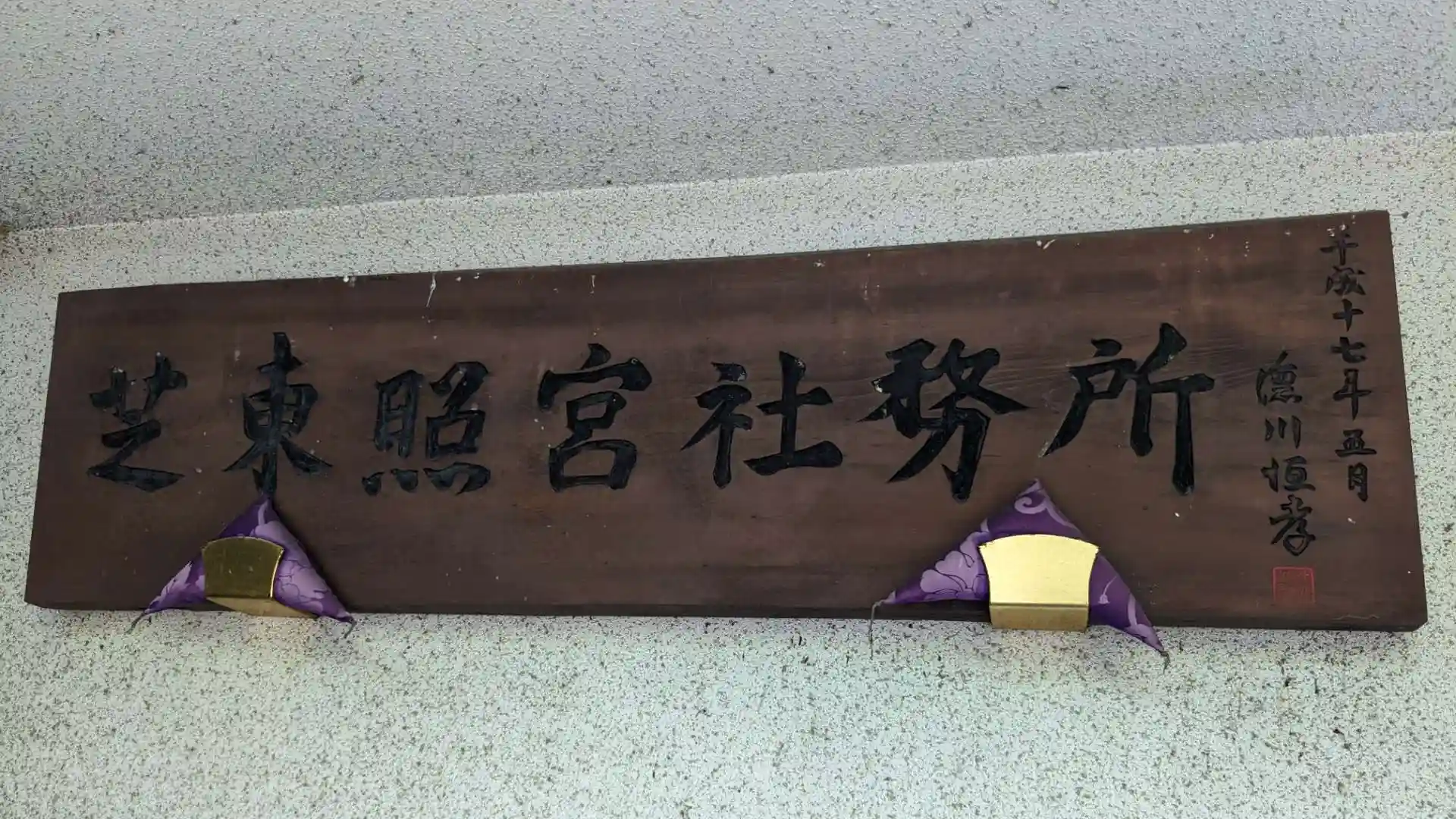 徳川家康を祀る神社ということもあり鳥居の扁額は十六代徳川家当主徳川家達、社務所の扁額は十八代当主徳川恒孝氏の揮毫です。