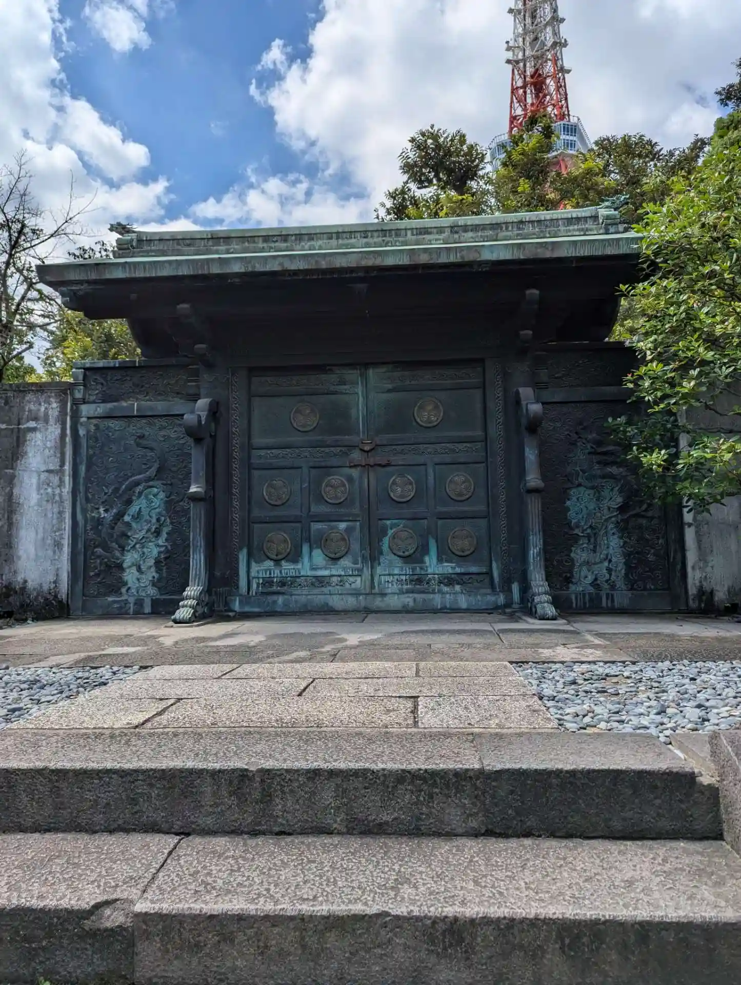 大殿が正面に見え、東京タワーも見えます。