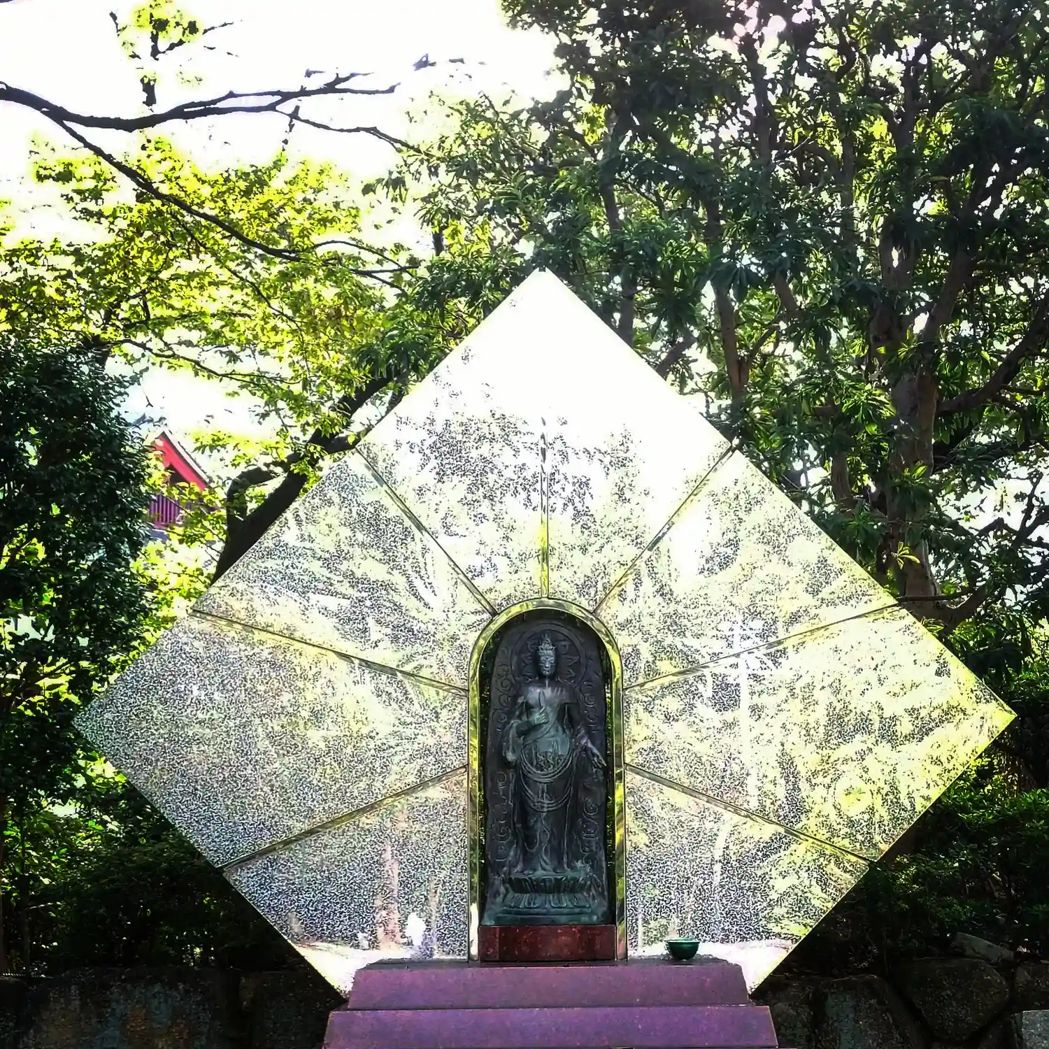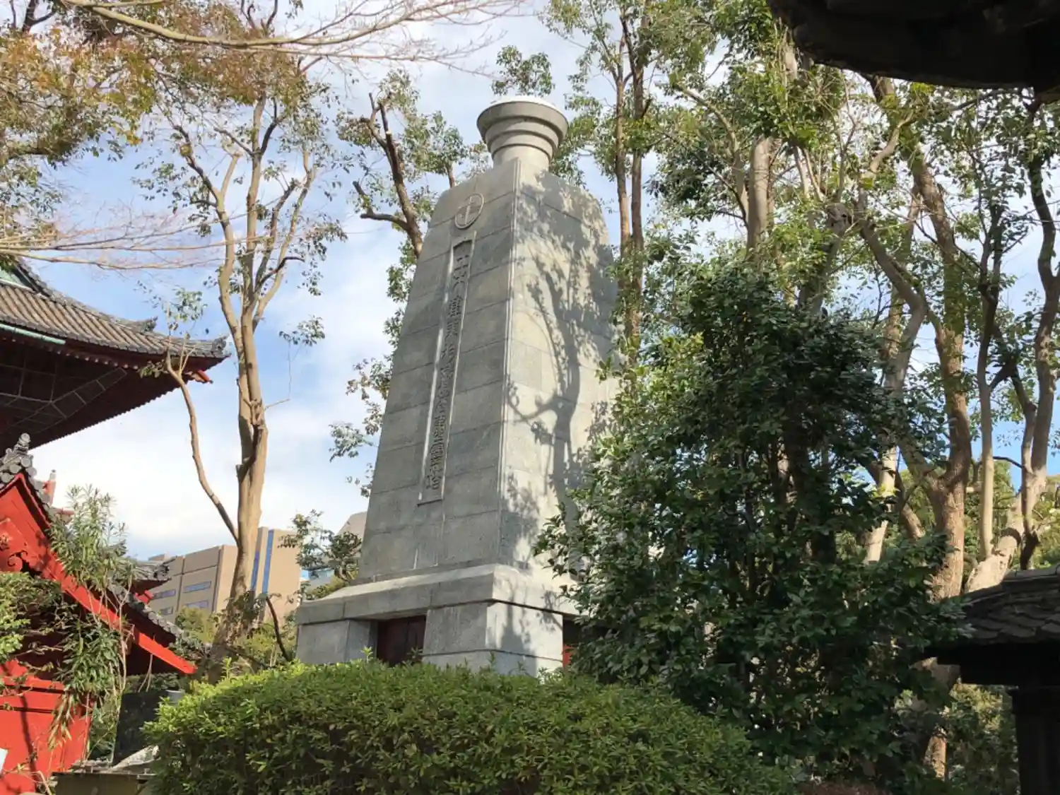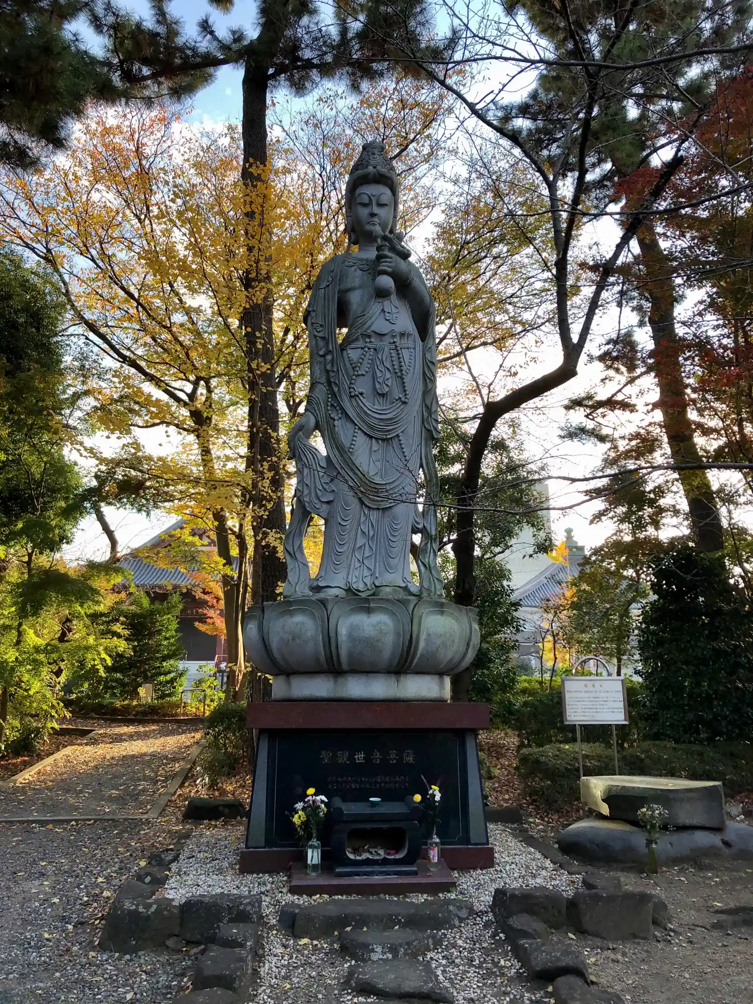三門をくぐり左側にある観音像。ホテルニュージャパン火災の慰霊のため建立されました。ただし、建立者が火災の責任で有罪判決を受けたホテル経営者なのがなんとも言えず、パフォーマンスの一環として多額のお金を投じたのかと思うと観音様も嘆いておられるように感じます。