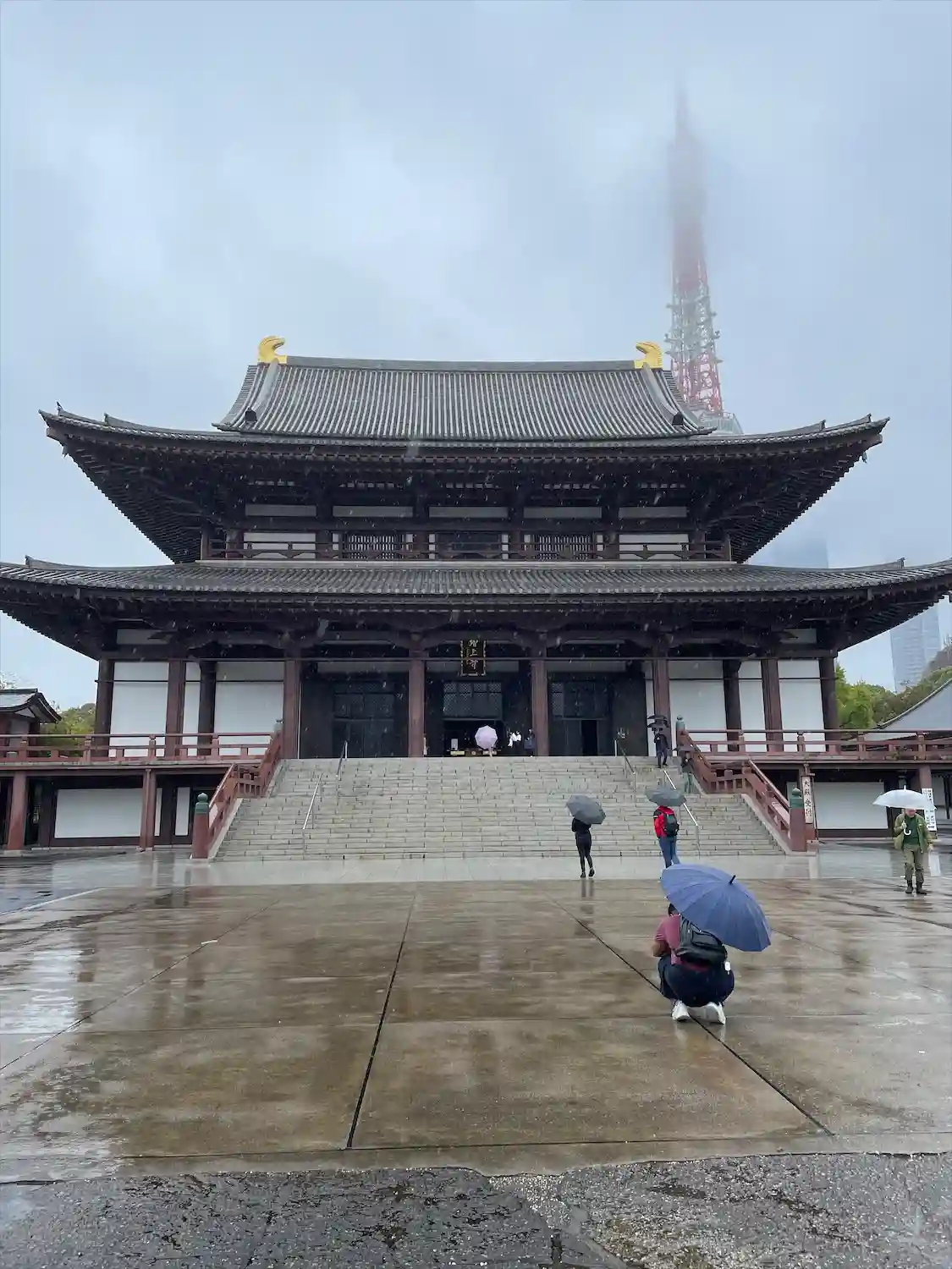 雨の降る中、増上寺の本殿へ参拝しました。
