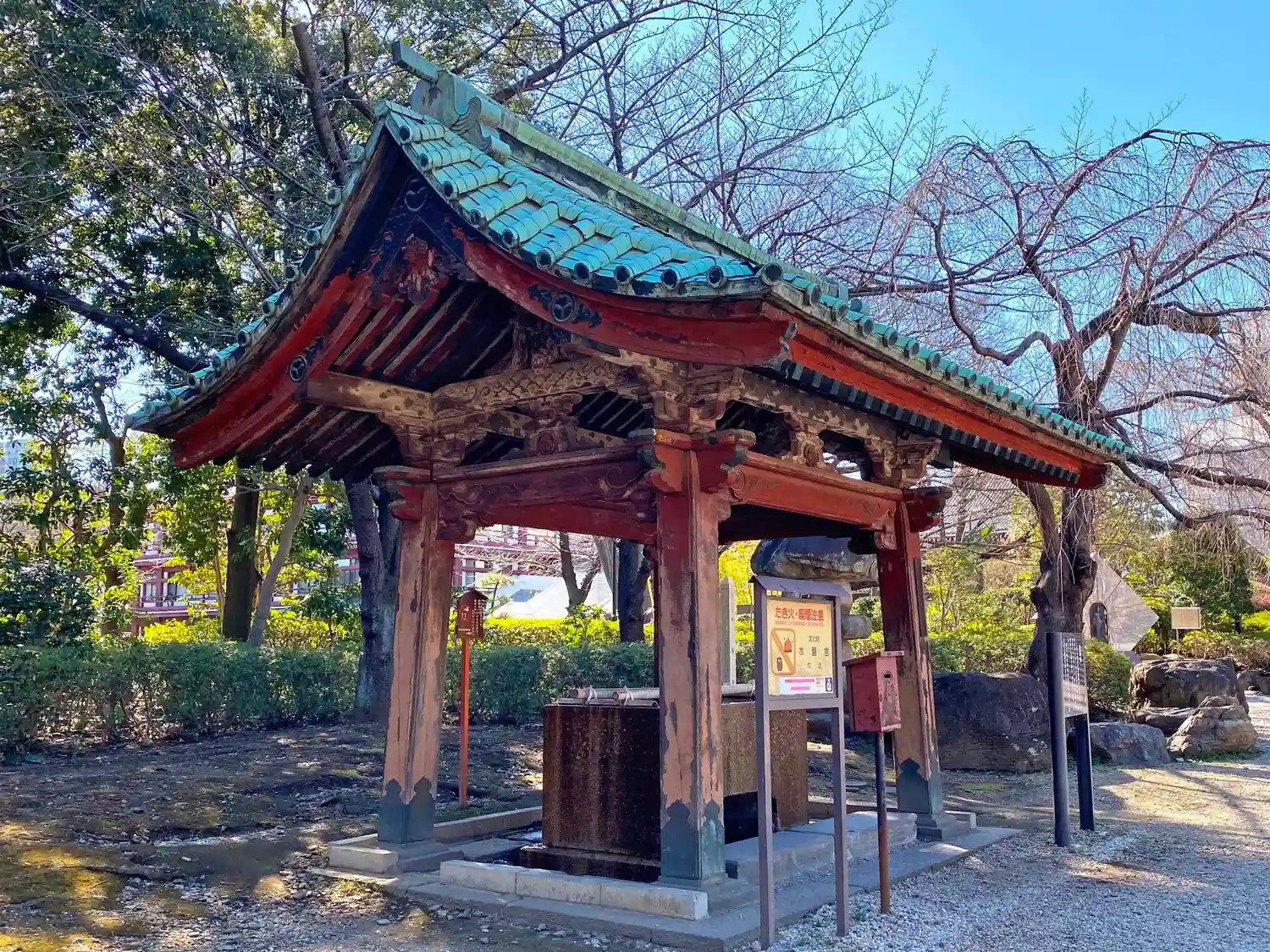 水盤舎(手水舎) もとは清揚院殿(三代将軍家光の三男で六代将軍家宣の父親、徳川綱重)の霊廟にあったのもの