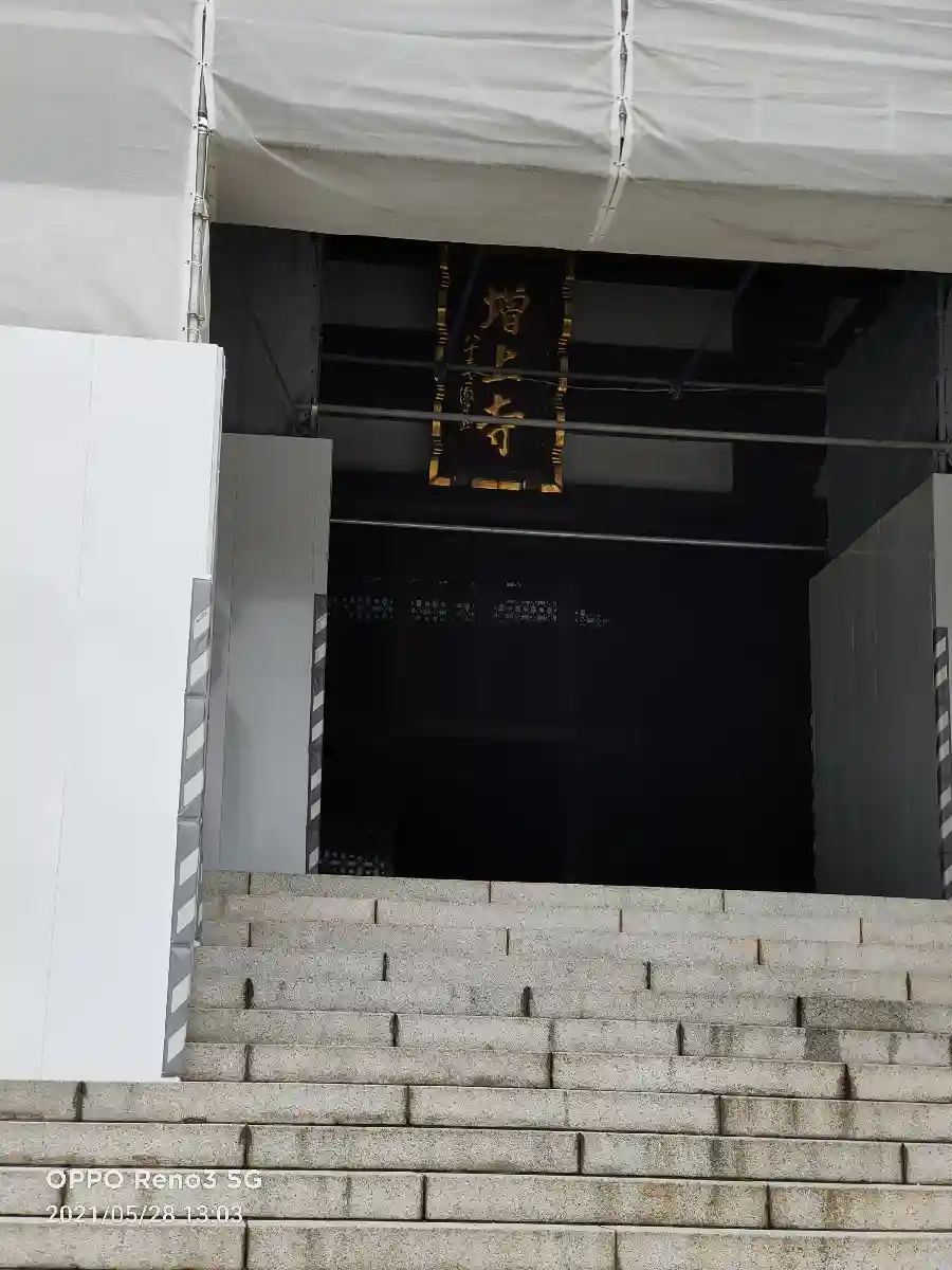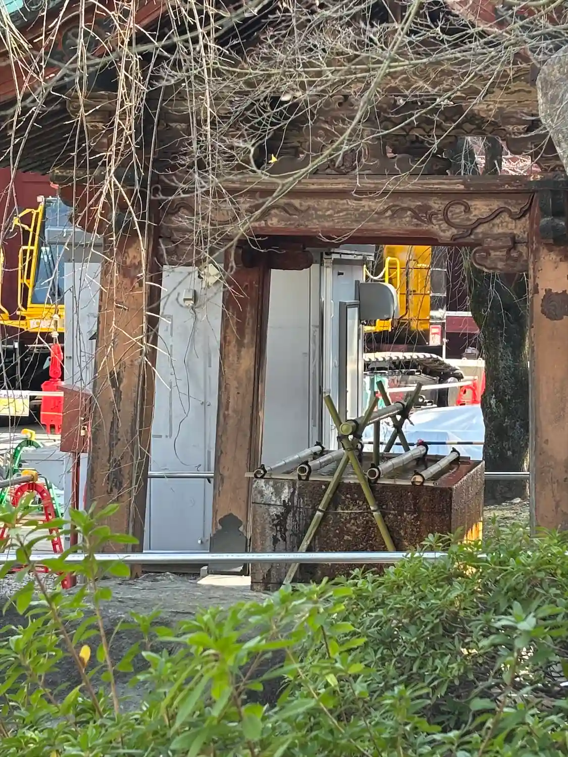 門は改修中でした…