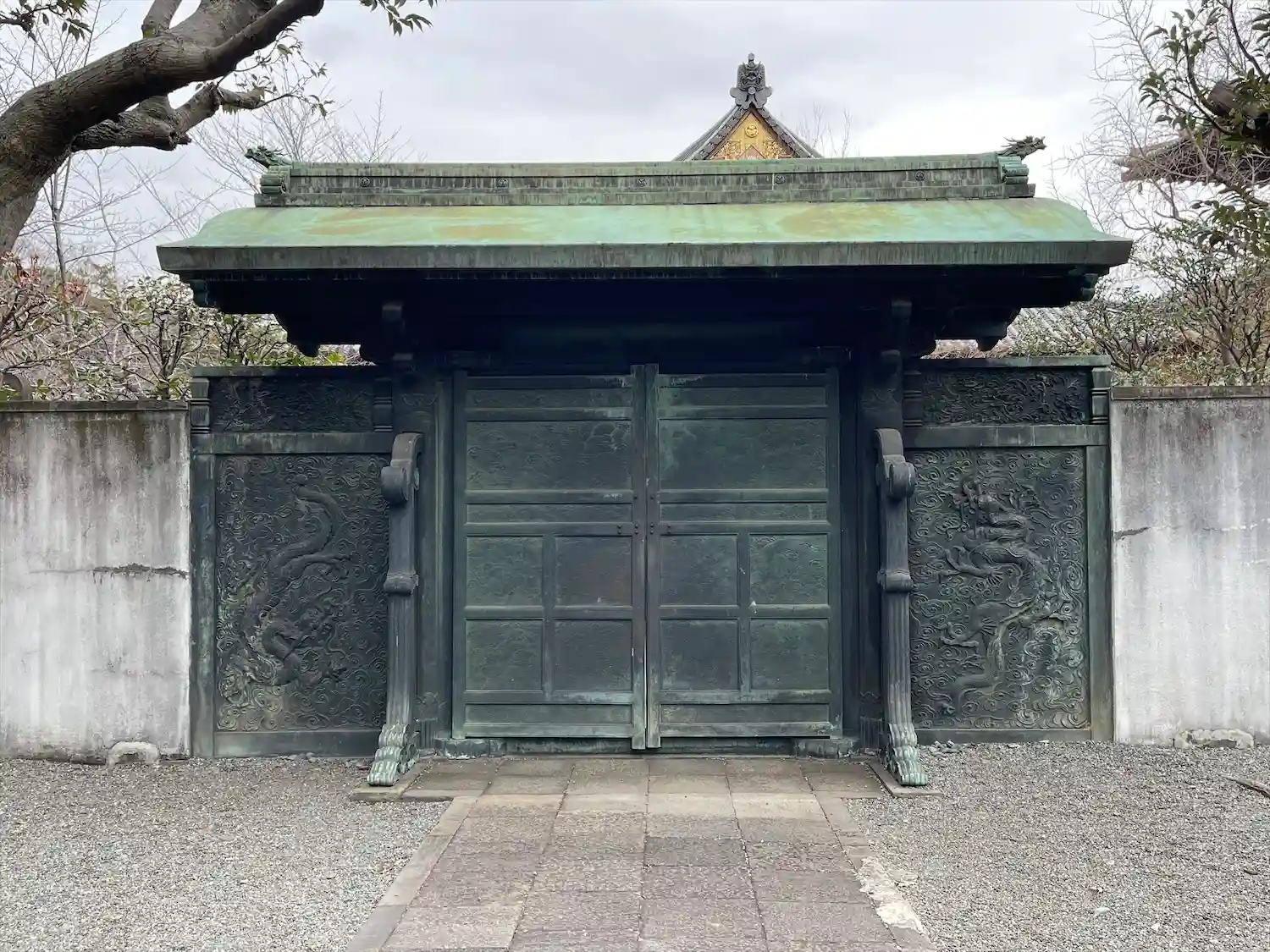 徳川家霊廟の鋳抜門。空襲により国宝解除された旧国宝。