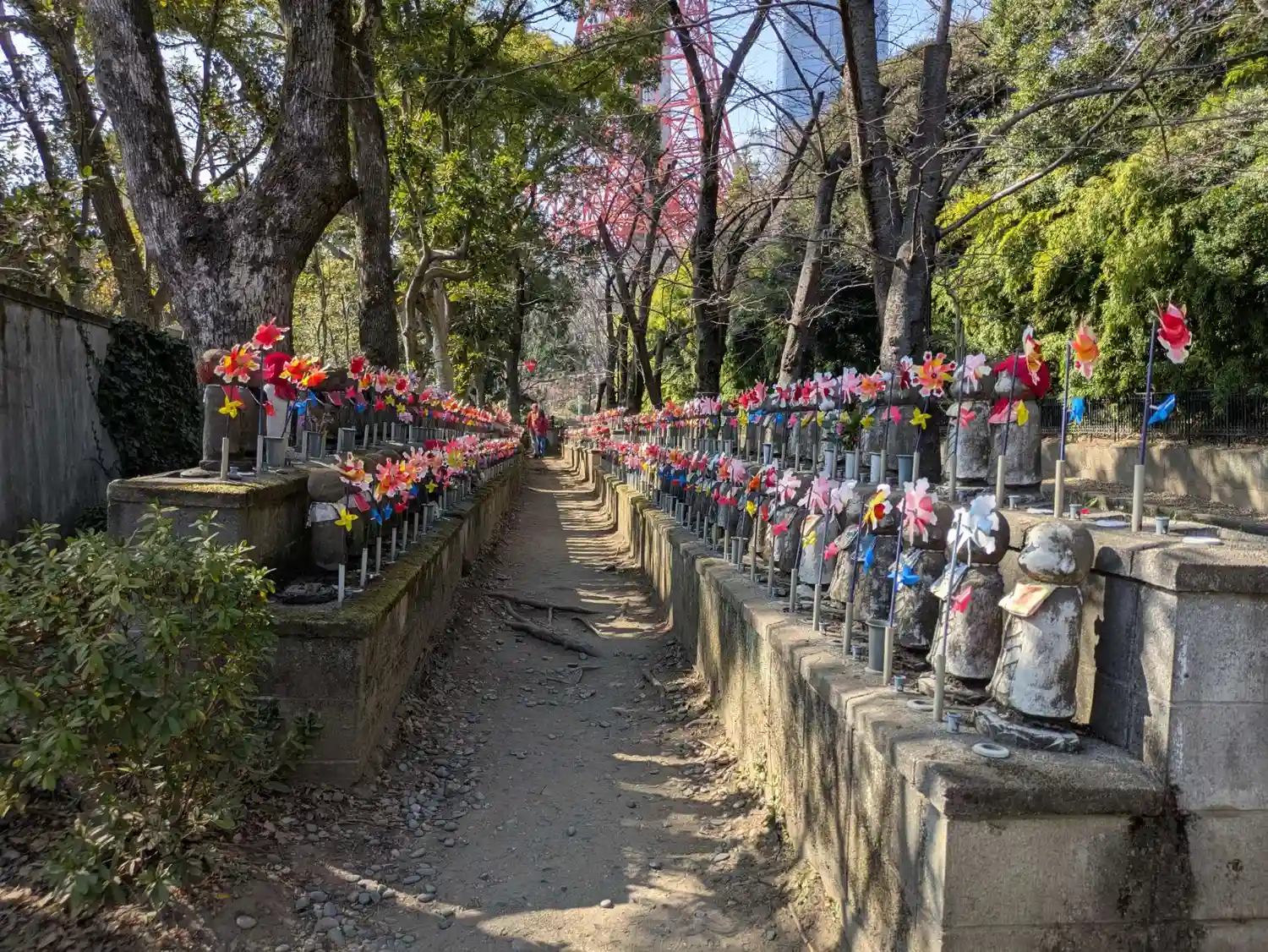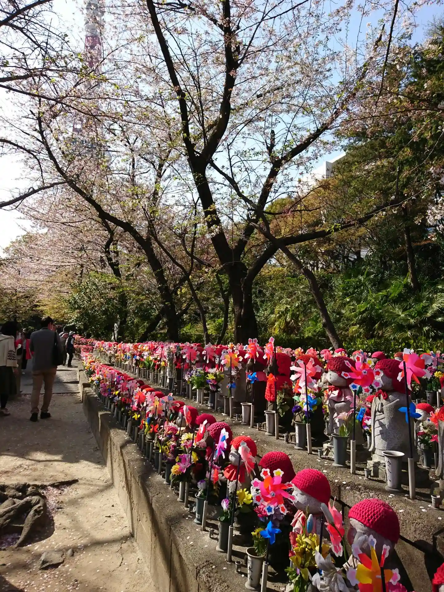 東京タワーを目印に増上寺への向かうと突然複数のお地蔵様はちょっと怖い。