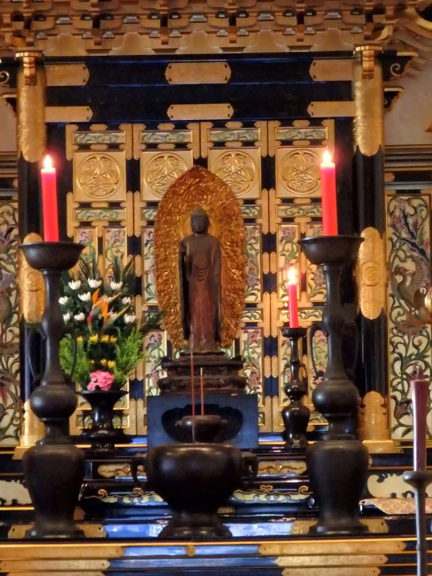 安国殿香煙で黒く変色したため、黒本尊とよばれる秘仏が祀られている