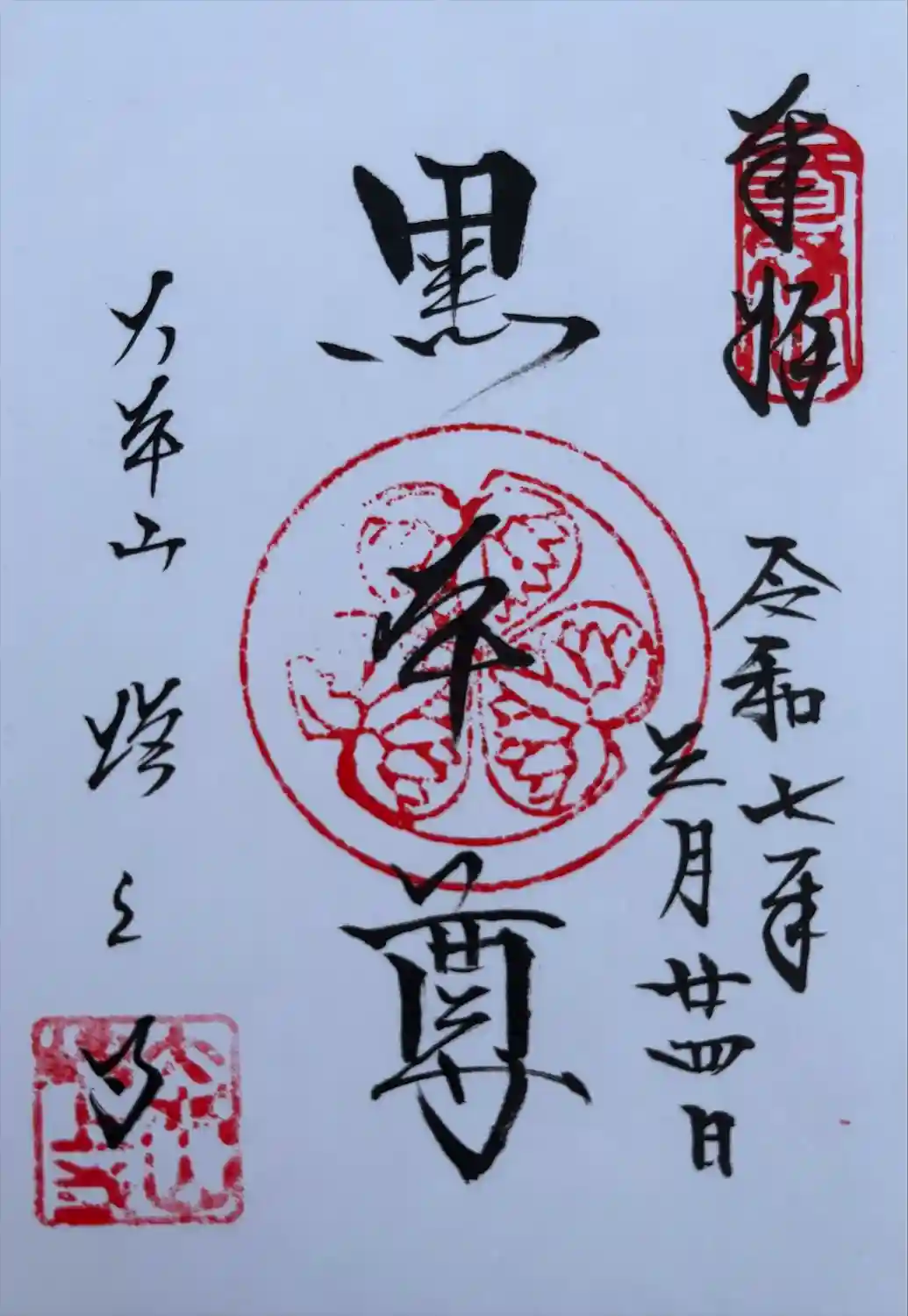 黒本尊の御朱印(直書き) 志納料500円