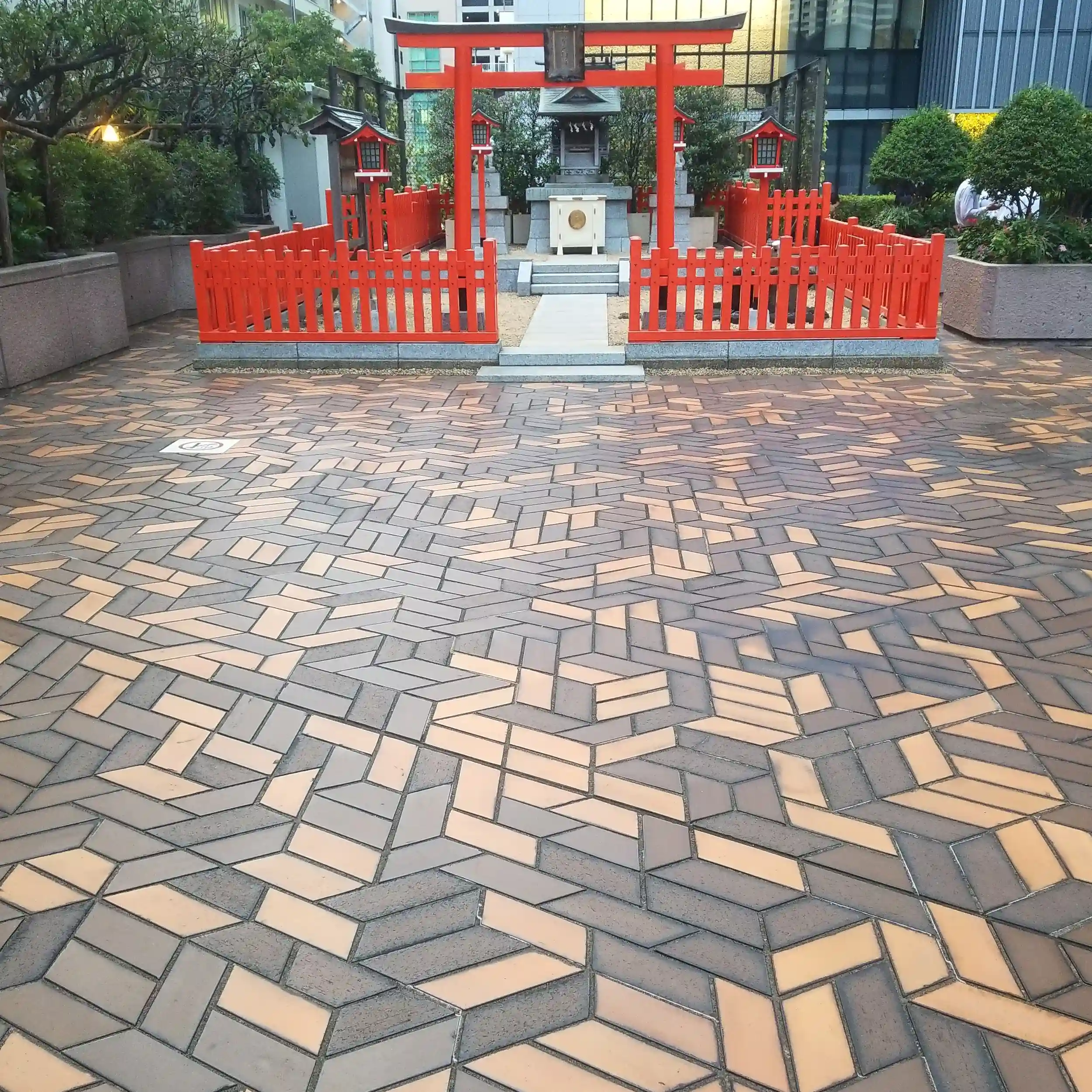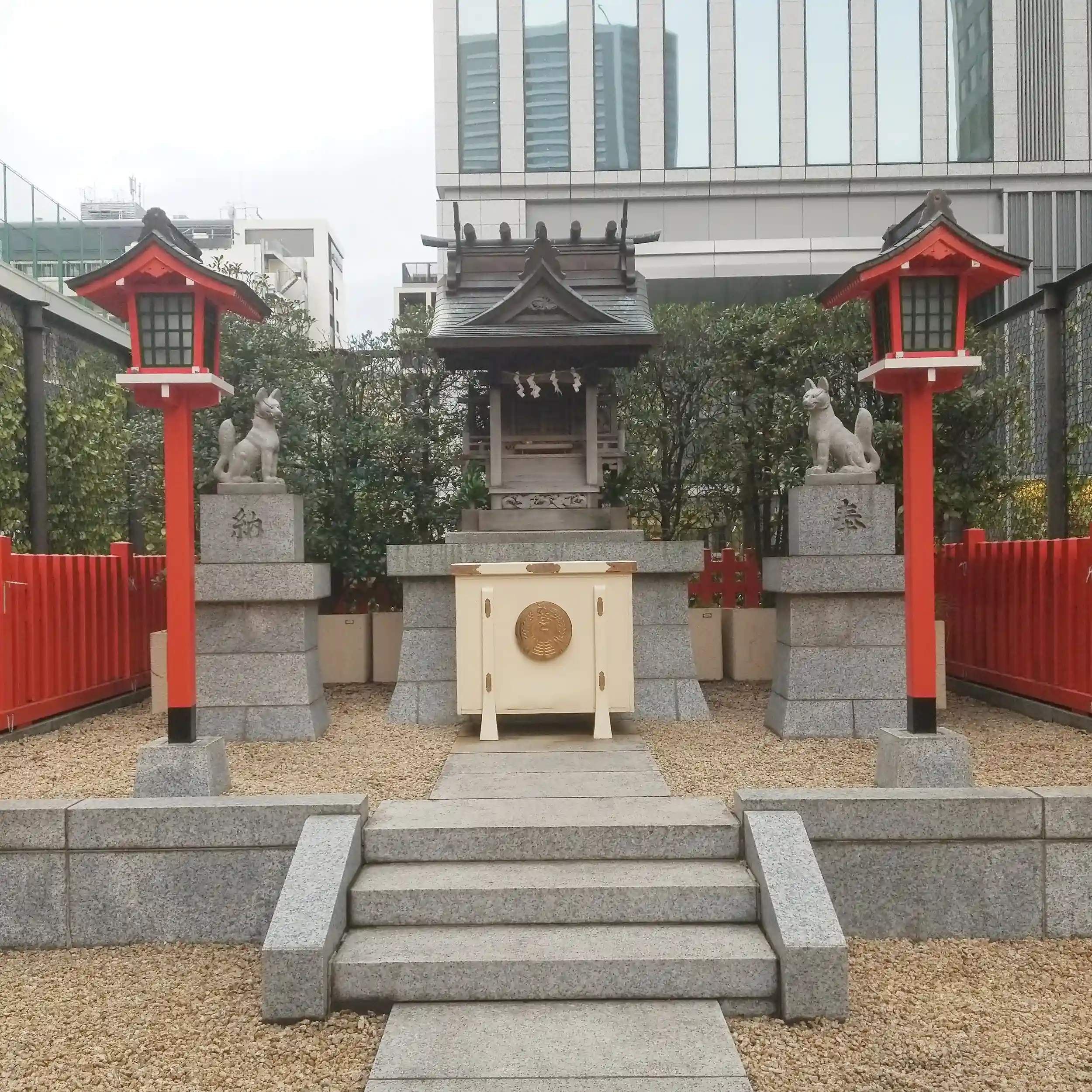 ビルの中庭にあり、隣はスモーキングエリアになっていて、神社の横でサラリーマンの方達が、プカプカと煙草を吹かしているという、少しシュールな光景が見られましたよ!