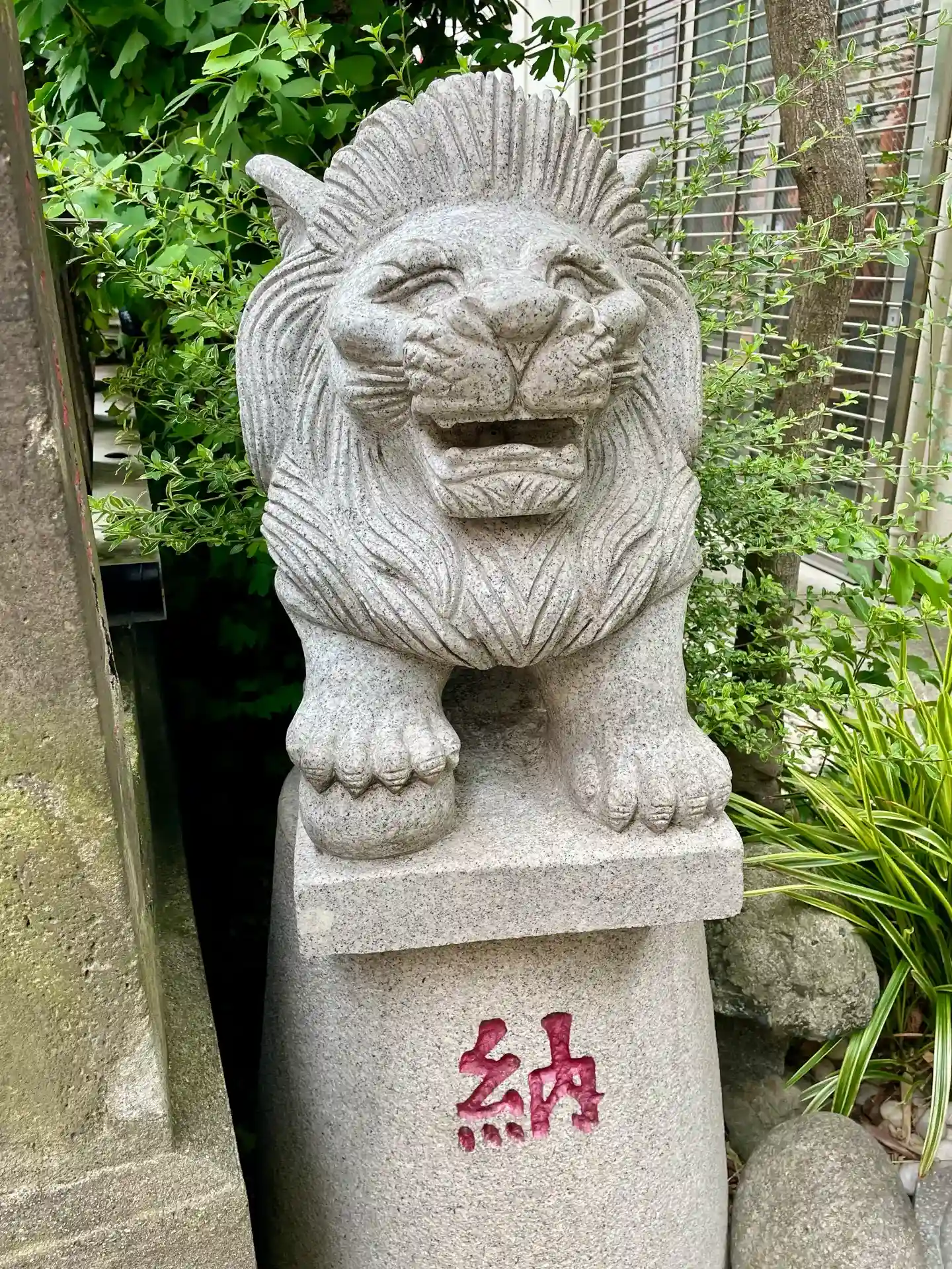 社頭にそれぞれの鳥居が置かれ、社殿にもそれぞれの扁額が掲げられているのが特徴的であり、境内にはライオン型の狛犬が奉納されている。